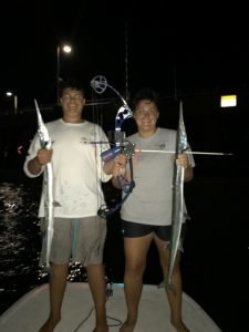 Jackie Maffei and Cody Isaac stuck two houndfish at the route 50 bridge Sunday evening on Cody’s first ever bow fishing trip.