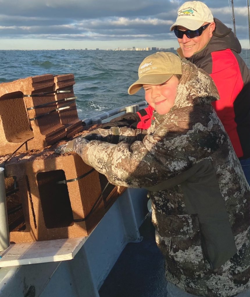Young Mr. Tyler of Deale MD. was our guest reef builder(w/Grandad George), first limit, & biggest sea bass.