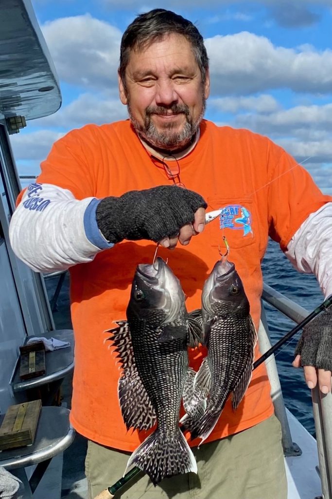 Captain Monty Hawkins of the Morning Star is on fire so far this winter and today was sea bass boat limit #15 in a row