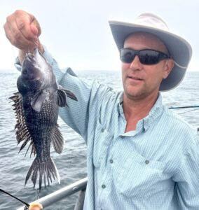 Captain Jason Mumford of Lucky Break Charters had loads of throwback flounder and this keeper for Lake Crisco.