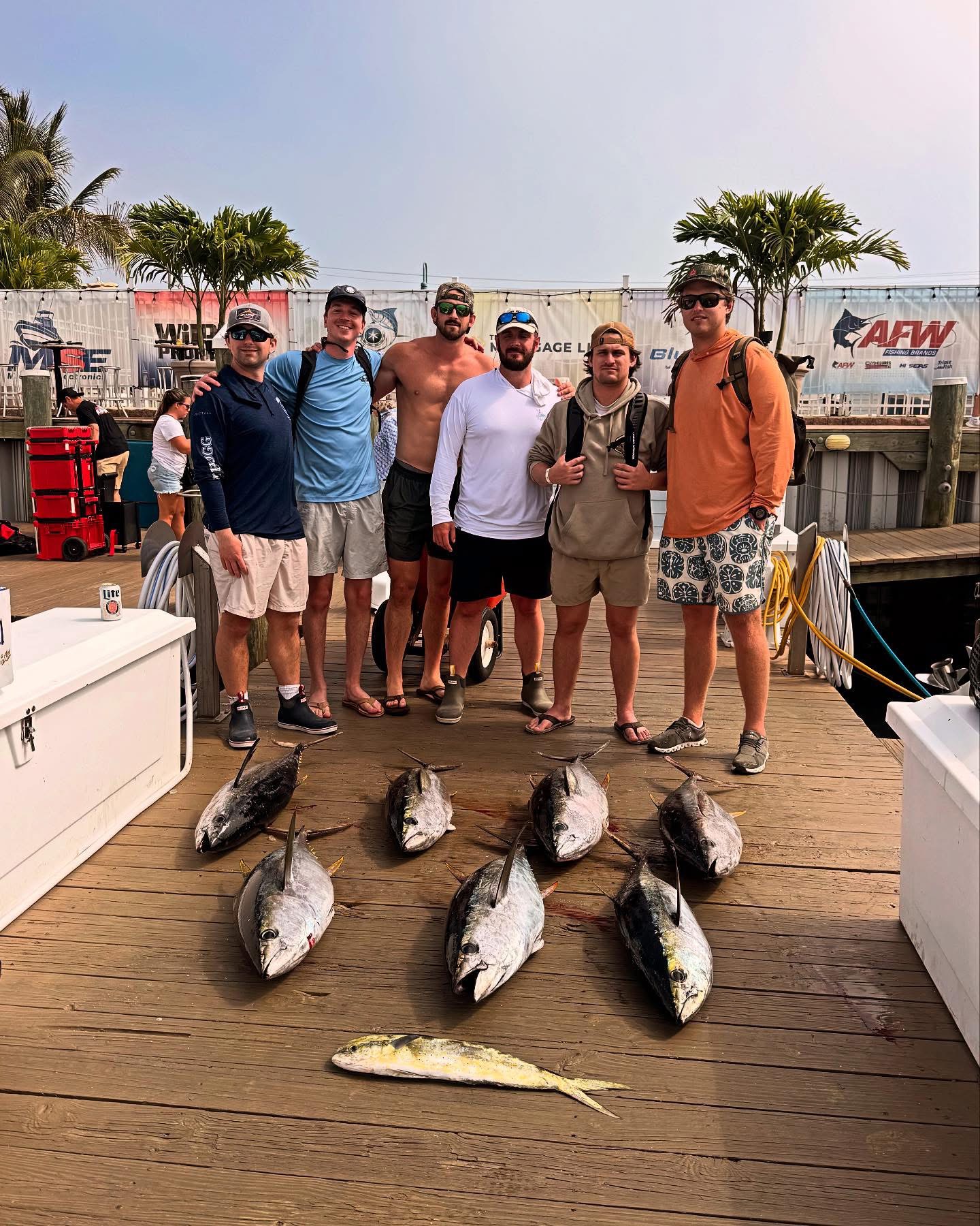 Captain Chris Watkowski, with mates Ben Harding and Kolton Sheeler of the Spring Mix II had a great day of trolling with nine yellowfin tuna for their crew.