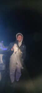 Joe Jenkins was fishing the Route 90 bridge at night when this 28.5” keeper rockfish ate his lead head and shad combo.