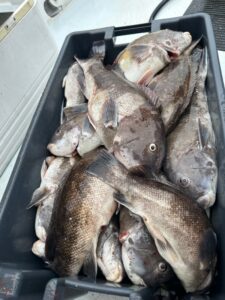 Captain Kane Bounds of the Fish Bound had to do some moving around to different structure today, but he did find some hungry fish that resulted in a limit of tautog for his anglers with some nice fish in the mix.