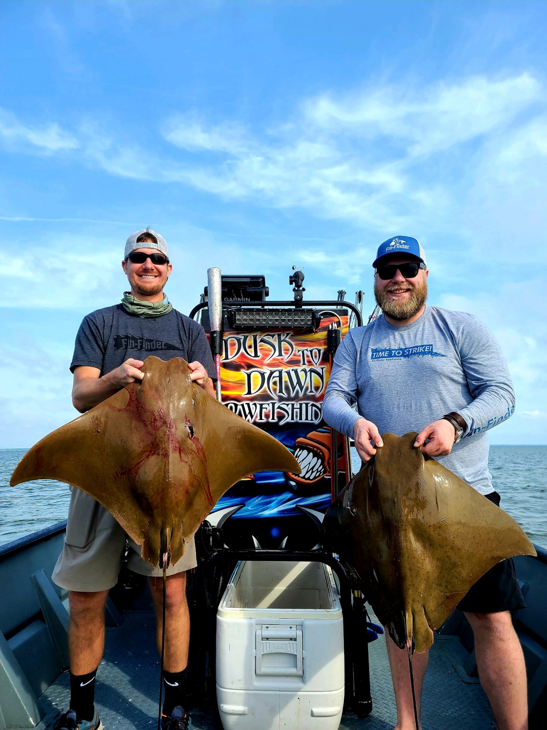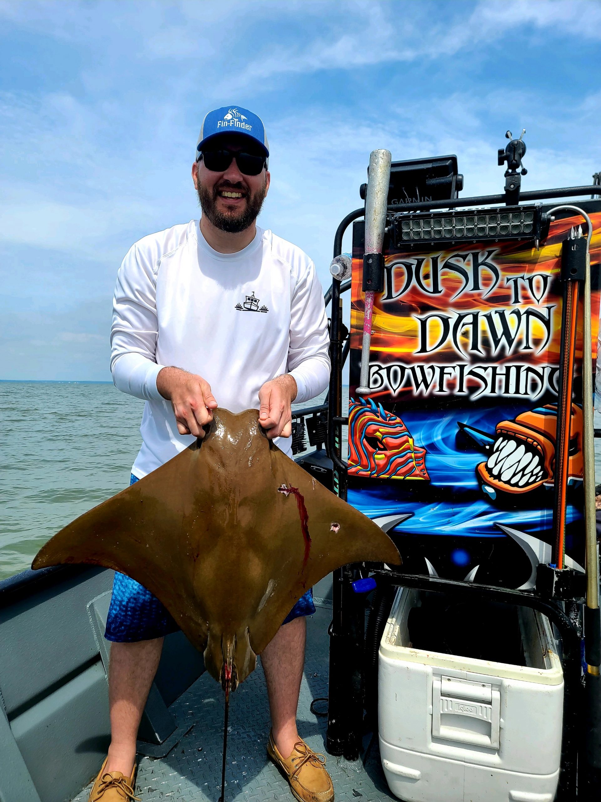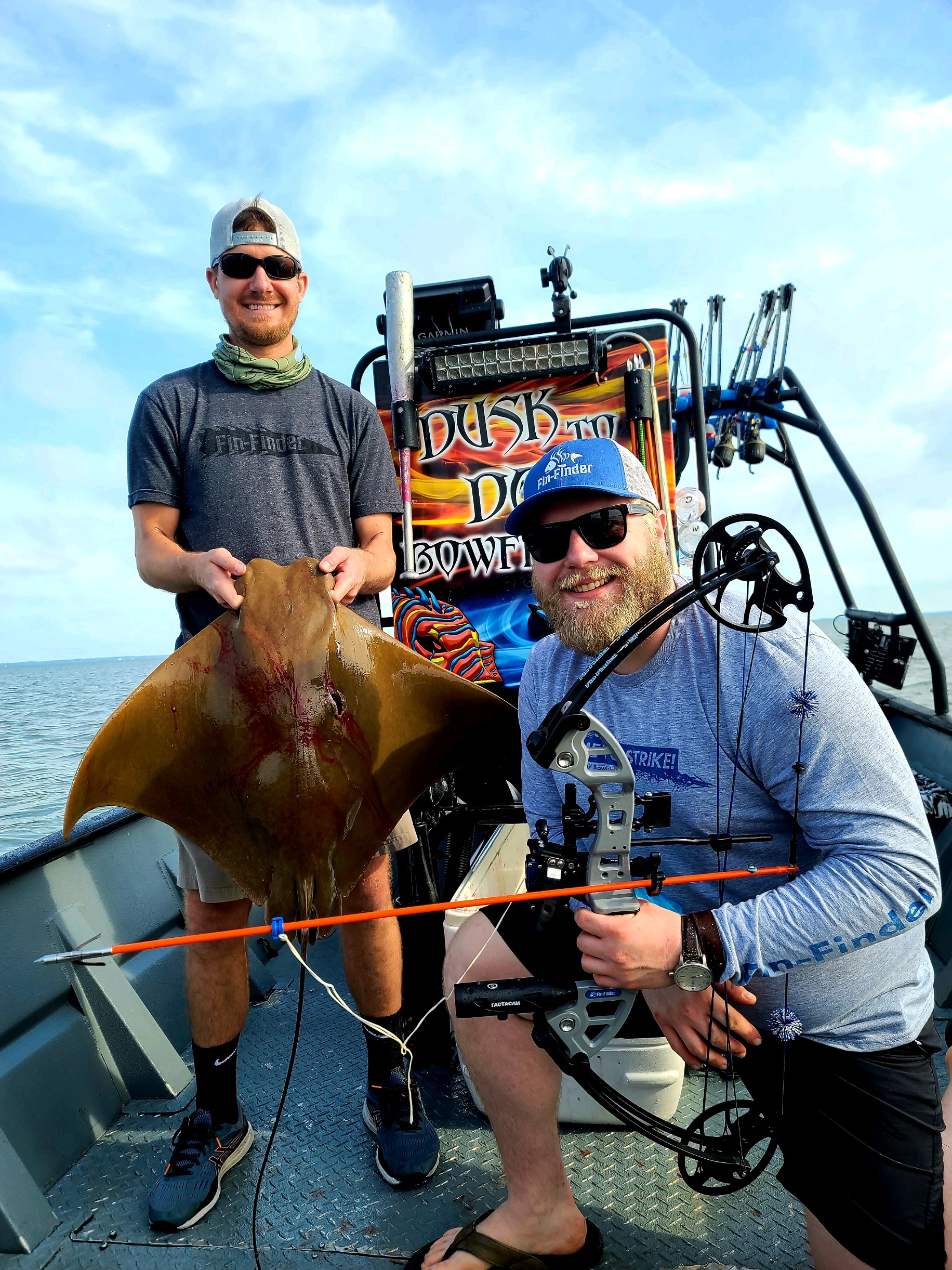 Shooters with Captain Marc Spagnola of Dusk to Dawn Bowfishing hit the mark on some tasty snakeheads last night and big cow nosed and southern rays today.