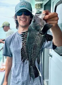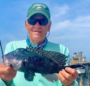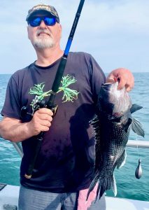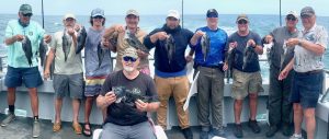 Benny Knots of Baltimore limited first & won the fish pool too. About half my guys were limited by 11:30 – others would follow suite in time. The last holdouts need Cathy Creel’s short course on unsportsmanlike sea bass annihilation. Her specialized instruction is of a hands on sort, an automatic learning where testosterone is driven to new lows as Cathy and her Lady Anglers pummel cbass while a male fisherman, any male – but especially if previously convinced of his angling prowess – suffers the role of ‘observer’ as the gals are boxing up doubles.