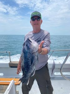 Sea bass were snapping again today and Captain Chris Mizurak of the Angler put his anglers on a bunch of good fish. They also had a couple of keeper sized flounder caught by Mr. Supposedtobeatwork.