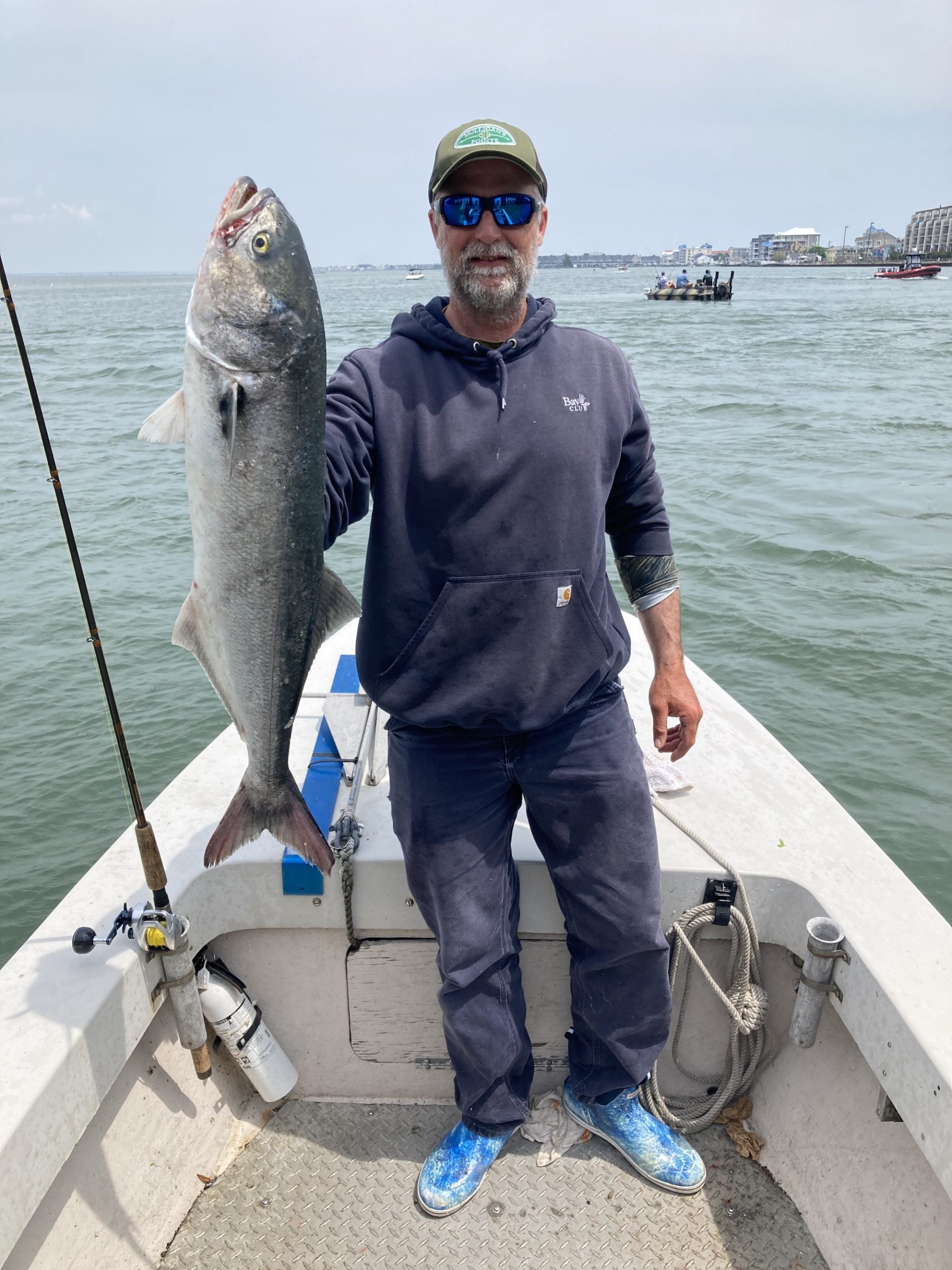 Shawn Flaherty was fishing with Big Bird Cropper today when he landed this stud 35″ bluefish in the OC inlet.