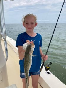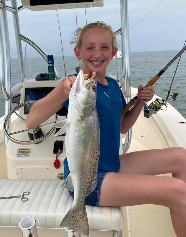 Matt down at Sea Hawk Sports Center had a nice day on the water with his daughter Belle on the Chesapeake Bay catching some rockfish and some very nice speckled trout.