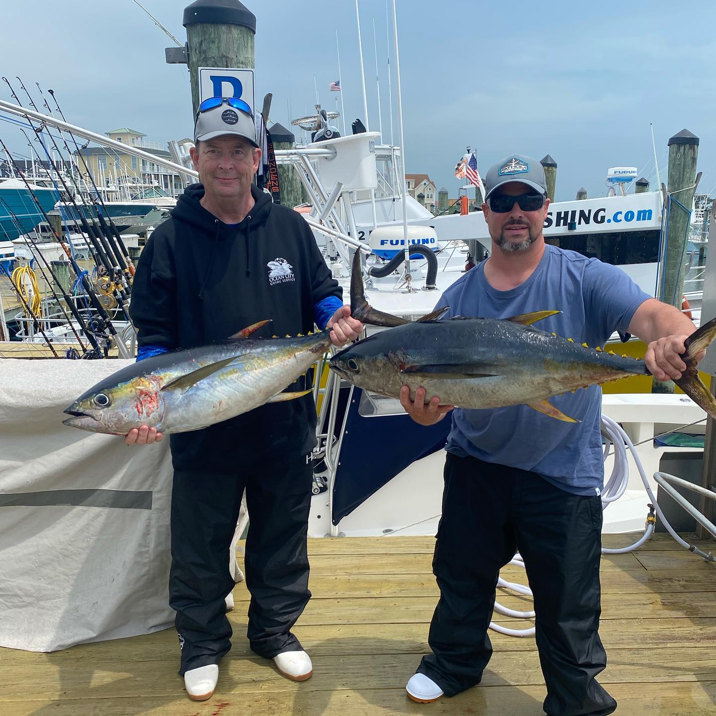 Captain John Prather of Ocean City Guide Service was trilling off the beach today with his dad and brother and had a couple of nice yellowfin tuna to show for it.