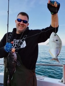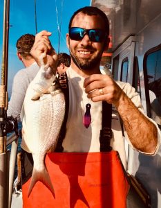 Danny Iacangelo, among my finest deckhands ever and now running crew boats is a newly proud Dad who managed to sneak in a day’s fishing.