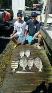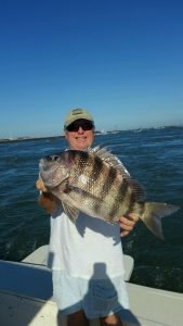 There have been a bunch of sheepshead being caught in the inlet lately and today Captain Jason Mumford of Lucky Break Charters found them again. Captain Jason put one crew on five nice sheepshead in the inlet this afternoon and put Hugh Cropper on a fat sheepshead.