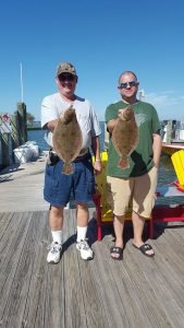 Flounder fishing in the bay this morning was really, really good. There weren’t a ton of keeper fish caught, but there were a lot of fish caught. The Bay Bee out of the Ocean City Fishing Center had one keeper and released another 60 fish on this mornings trip. Captain Drew Zerbe of the Tortuga released a ton of shorts too and put these two keepers in the box.