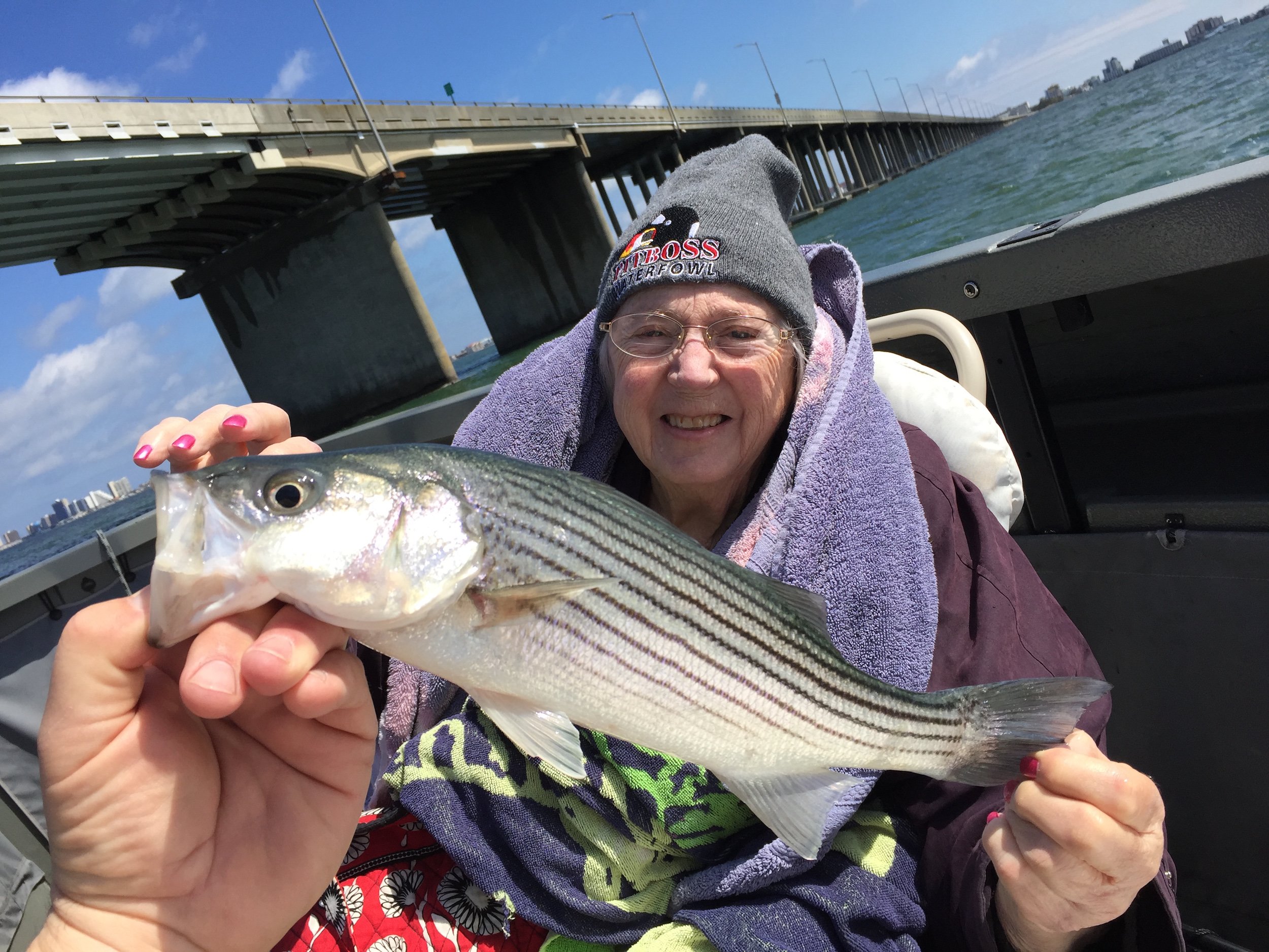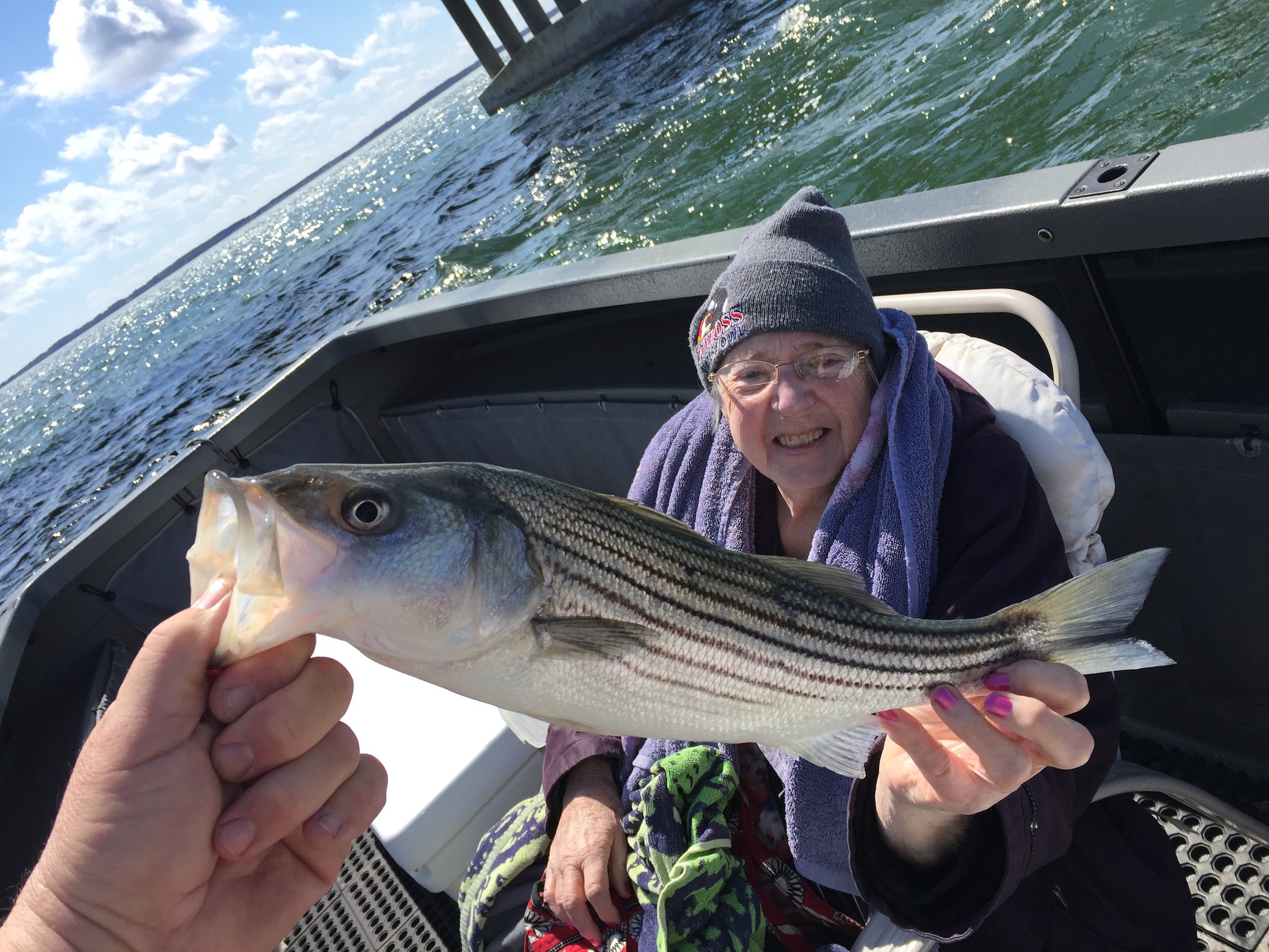 The second report came in from my buddy Jeff Coats of Pit Boss Waterfowl who had a great day fishing the route 90 bridge today with his mom Barbara….who is 81!! Jeff and “Gam” caught and released “28ish” small rockfish on the world famous “Roy Rig” and had a lot of fun! The largest fish was about 22″….. it was a great day to get “Gam” out on the water.