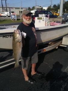 Now to the fishing report. On another day that I thought I wouldn’t be typing out a report I was glad to get a text from Big Bird Cropper with a photo and report of some fishing. Bird and Carl fished the fishbowl north of the route 50 bridge today and reported plenty of throwback flounder action, and Carl found this nice 29″ rockfish while casting Bird’s World Famous Roy Rig.