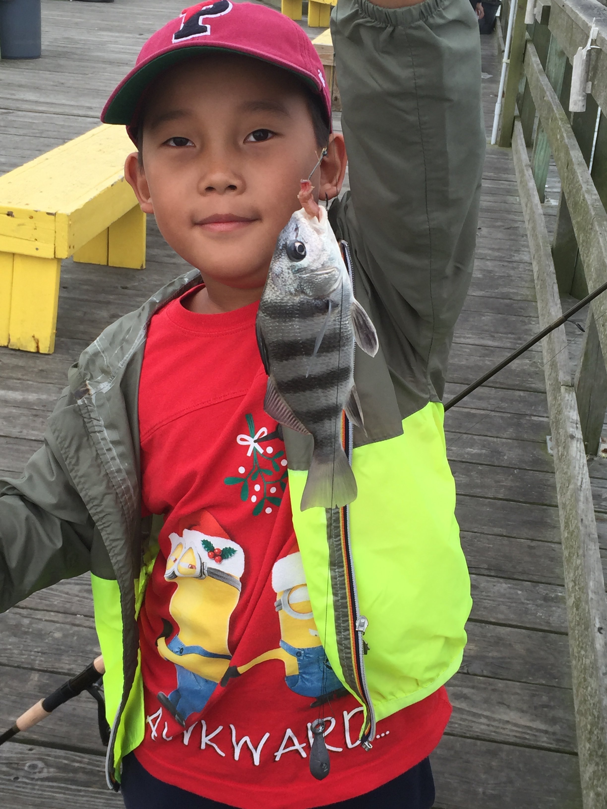 I’m pretty certain nobody ventured into the ocean again today, but anglers are fishing the back bays hoping for the water to clean up a little. Bear at the Oceanic Pier sent me proof that people are actually fishing and there are some fish being caught. This junior angler caught a small black drum on bloodworm from the pier this morning. It’s not much, but it’s a good sign.