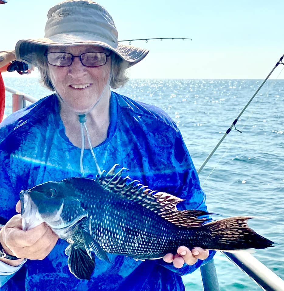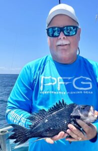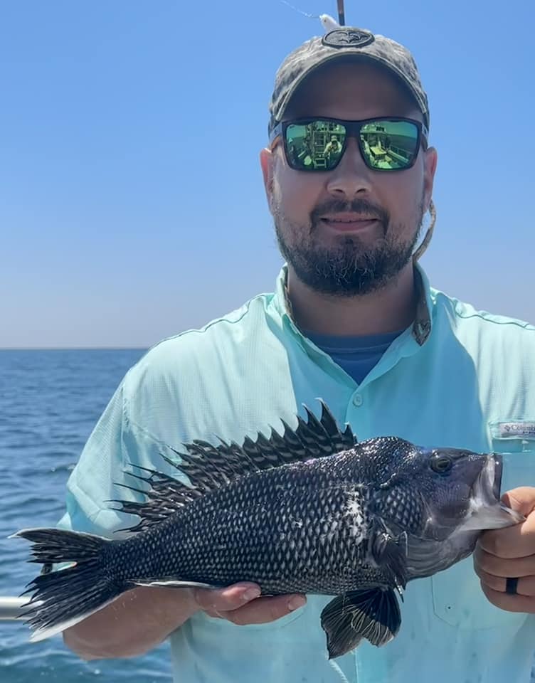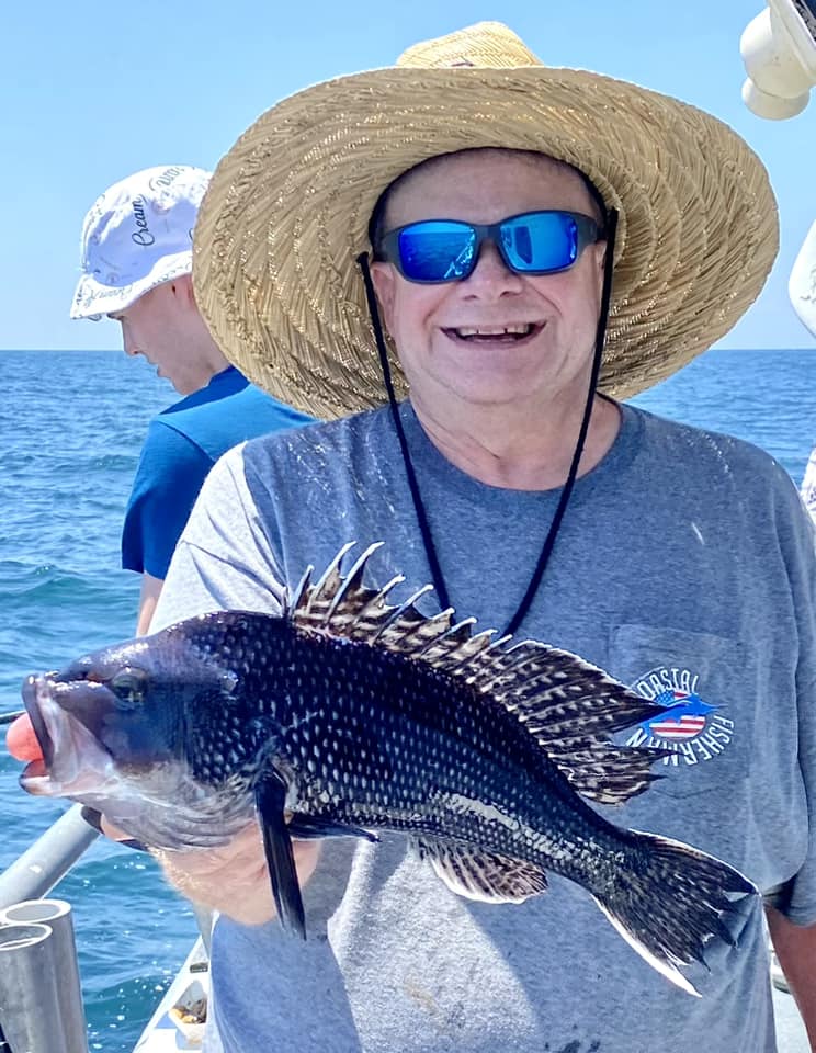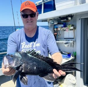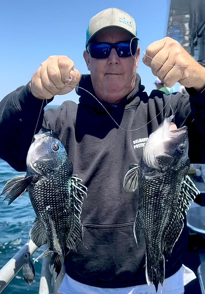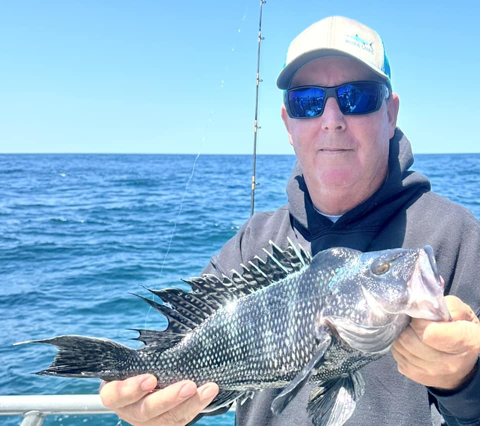 Sea bass were up off the bottom today. Way up. Even an accomplished angler such as Mike Fry was surprised most of his cbass bit off the bottom.