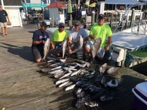 A recent deep drop trip aboard the Lisa with Captain Stu Windsor produced this pile of fish. The largest blue line tilefish weighed in at 14.3 pounds.