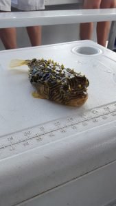 The Tortuga with Captain Drew Zerbe had a nice keeper for this morning’s fish pool and a rare spiny box puffer on this afternoon’s trip.