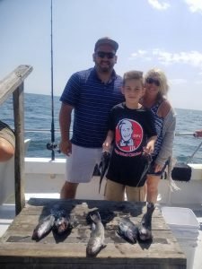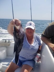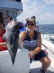 Captain Chris Mizurak of the Angler reported a beautiful day with some good sea bass fishing today. Captain Chris saw some healthy knot heads come over the rail for happy anglers.