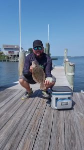 Bear down at the Oceanic Pier sent in this photo of Nick and David from Syracuse, NY who caught this triggerfish from the seawall on cut bait.