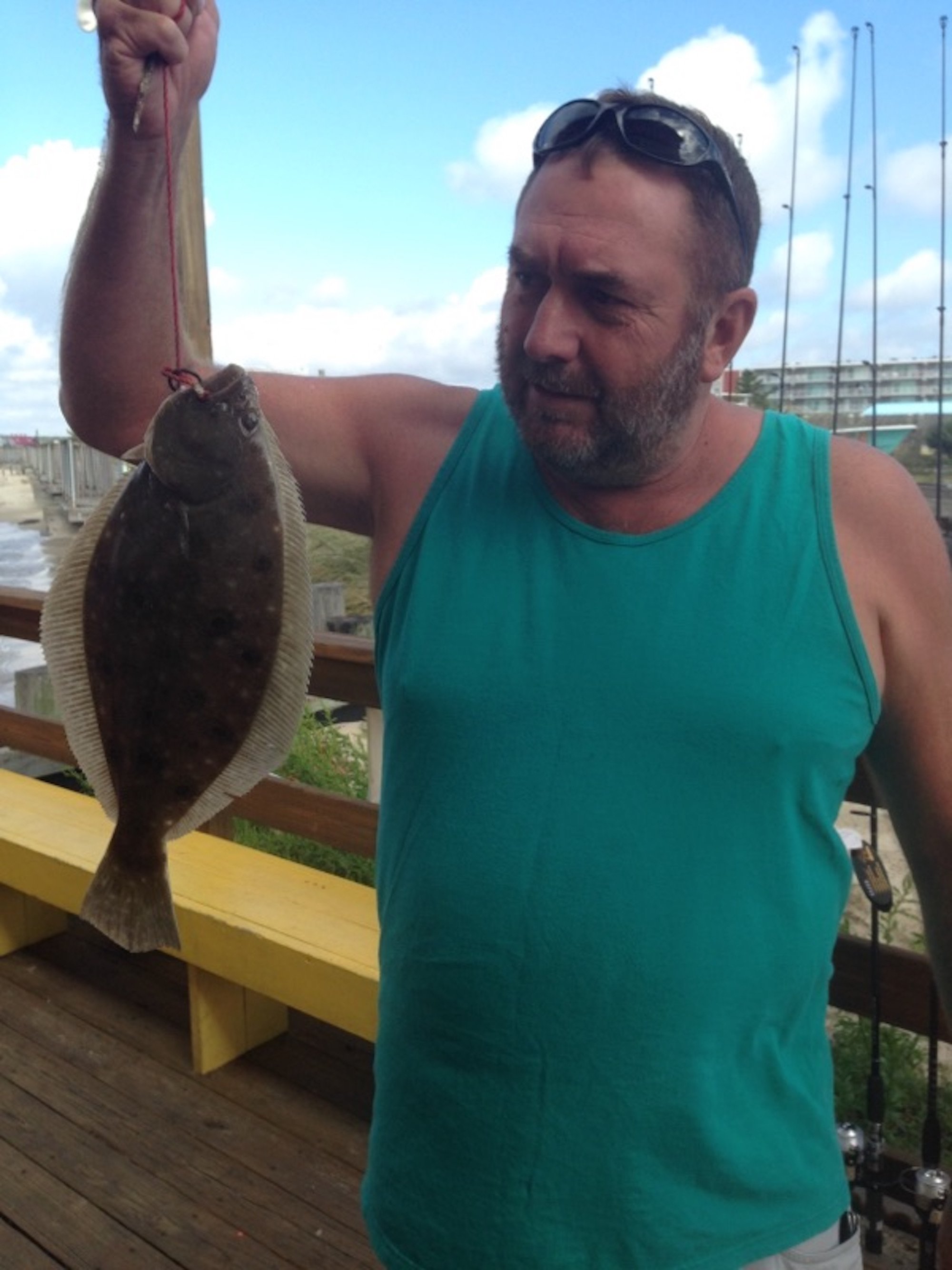Fishing at the Oceanic Pier and around the inlet has been really good the past few days in front of Matthew’s approach. Bear submitted several pictures today of anglers that have been having some great luck. Mike from Pennsylvania caught this 1 7 1/2″ keeper flounder on a minnow from the pier.