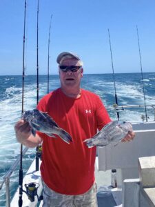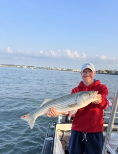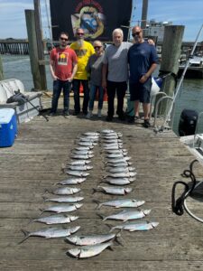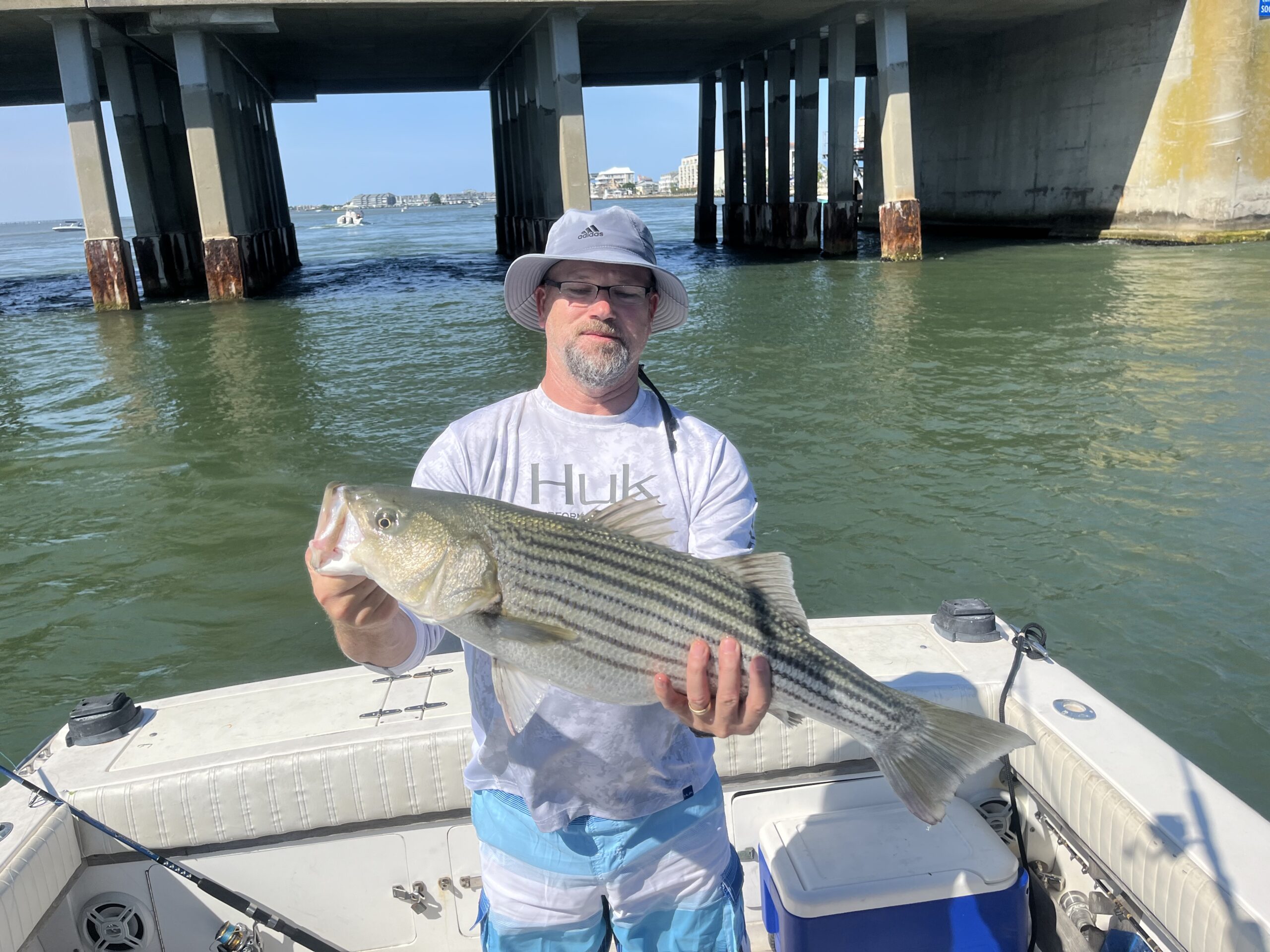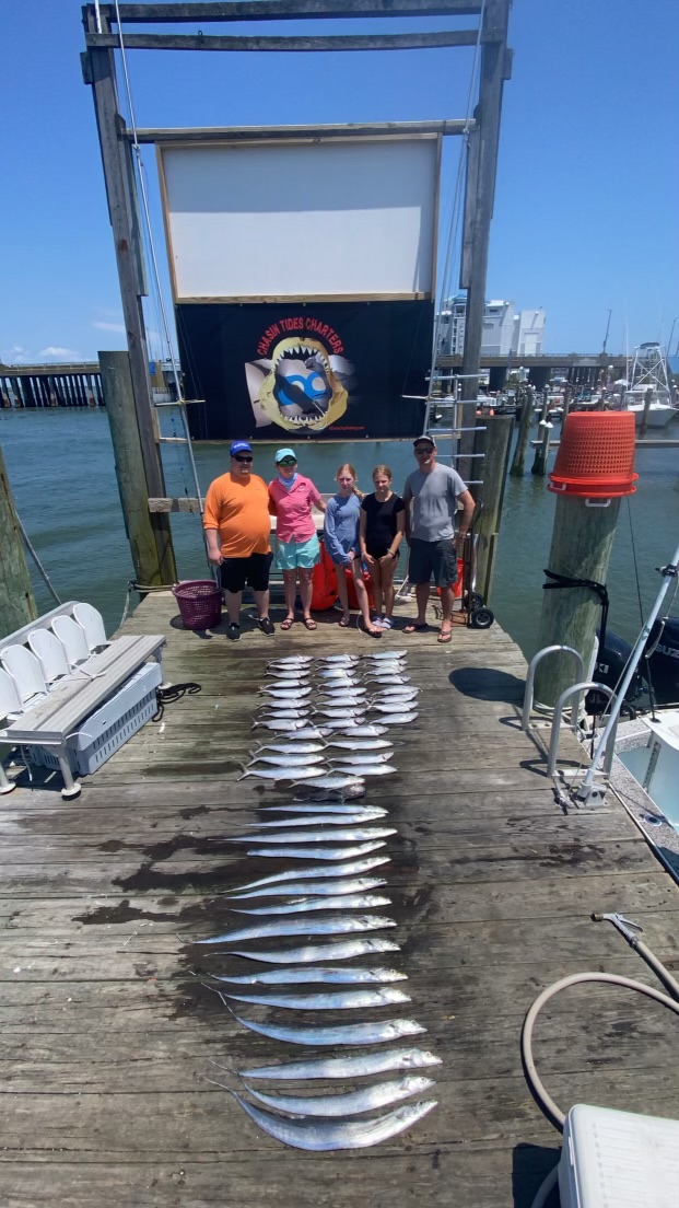 Captain Chase Eberle of Chasin’ Tides Charters has been doing well inshore and off the beach with striped bass from the OC Inlet and bonita, ribbon fish and Spanish mackerel from the ocean lumps.