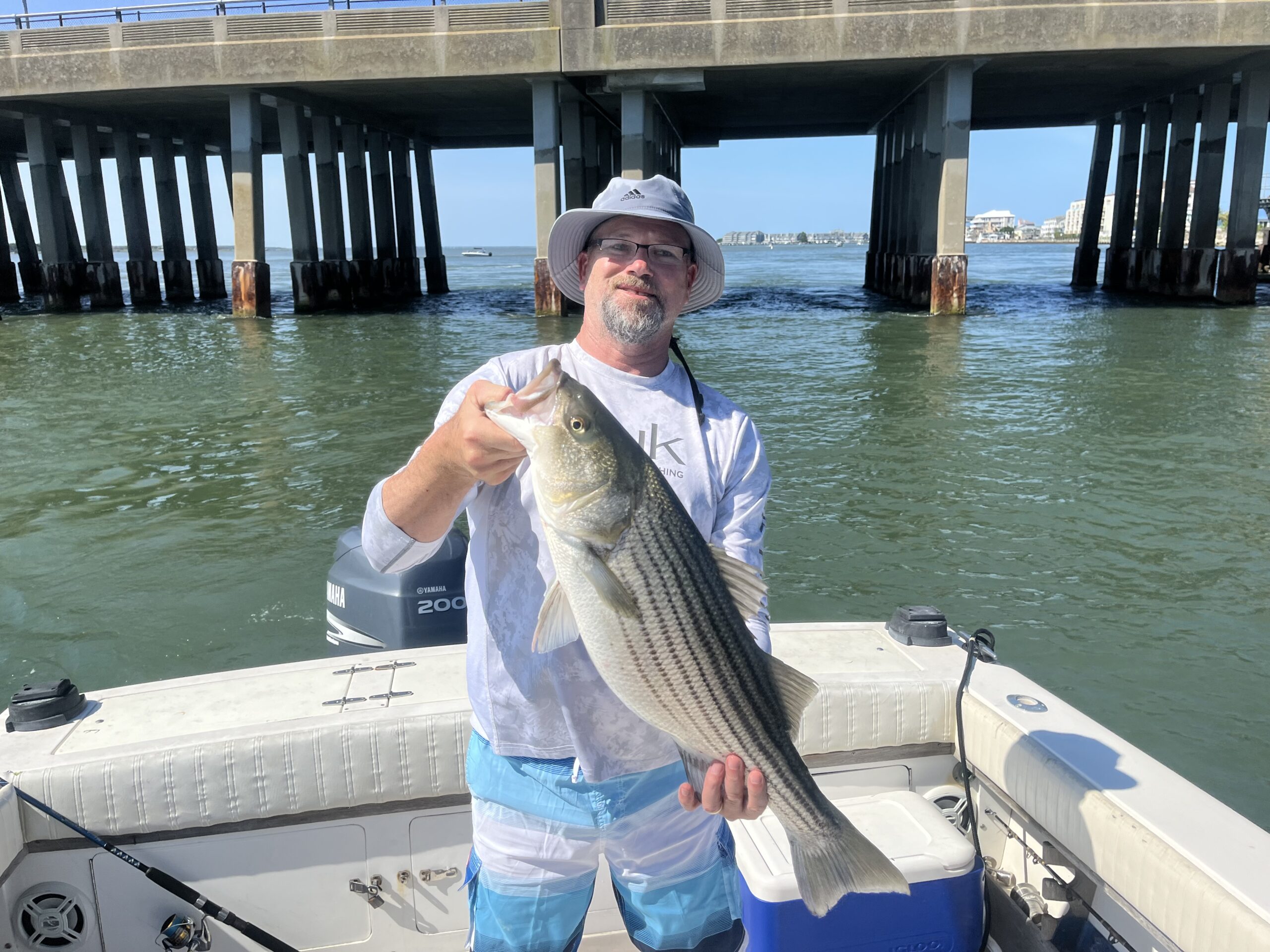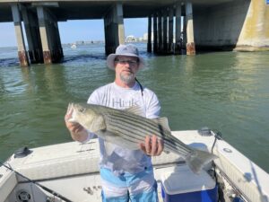 Bryan Mindte of Sunset Provisions and his bro-in-law Gary Finch had some fun “dredging” at the route 50 bridge where they caught some very nice striped bass.