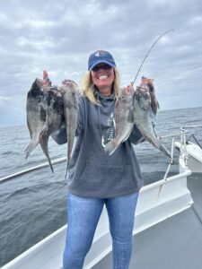 Captain Chase Eberle of Chasin Tides Charters had a great day for his anglers putting them on a limit of sea bass, a limit of blueline tilefish, a couple of golden tilefish, 25 mahi and a swordfish that was released.