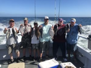 Bottom fishing over ocean structure was good for the party boat fleet today with some good sea bass fishing and some flounder and triggerfish mixed in. Captain Monty Hawkins of the Morning Star reported a decent day with several anglers pushing double digits in sea bass and some better flounder action. Joseph Hendershot of Westminster, MD took the ‘sea bass only’ pool with his 19″er. Also pictured are Bob Houser of Carlisle, PA (with a 17.5″ fluke) – Mark Riggin of Laurel, DE – Pam Maus of Shippensburg, PA – Todd Scorah From Millsboro, DE – & Clem Hoeger of Selbyville, DE.