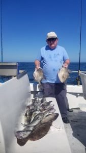 Captain Chris Mizurak of the Angler also reported good fishing today with some limits of sea bass and a bunch of tasty triggerfish.