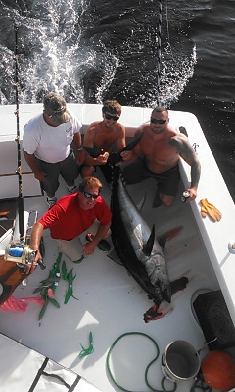 Captain Joe Drosey on board Rhonda’s Osprey played his hand smart today.  Captain Joe stayed a little closer to the beach for some bluefin action and I saw him back at the dock and cleaned up by 1PM.  Rhonda’s Osprey ended up with two nice bluefin and a mahi for their efforts.