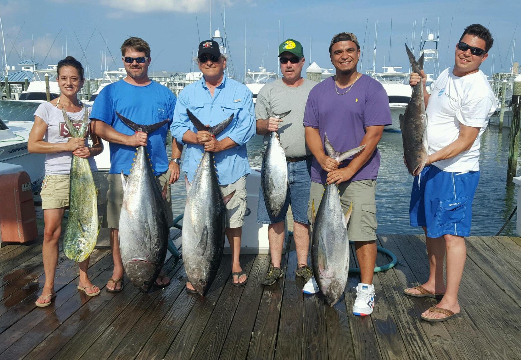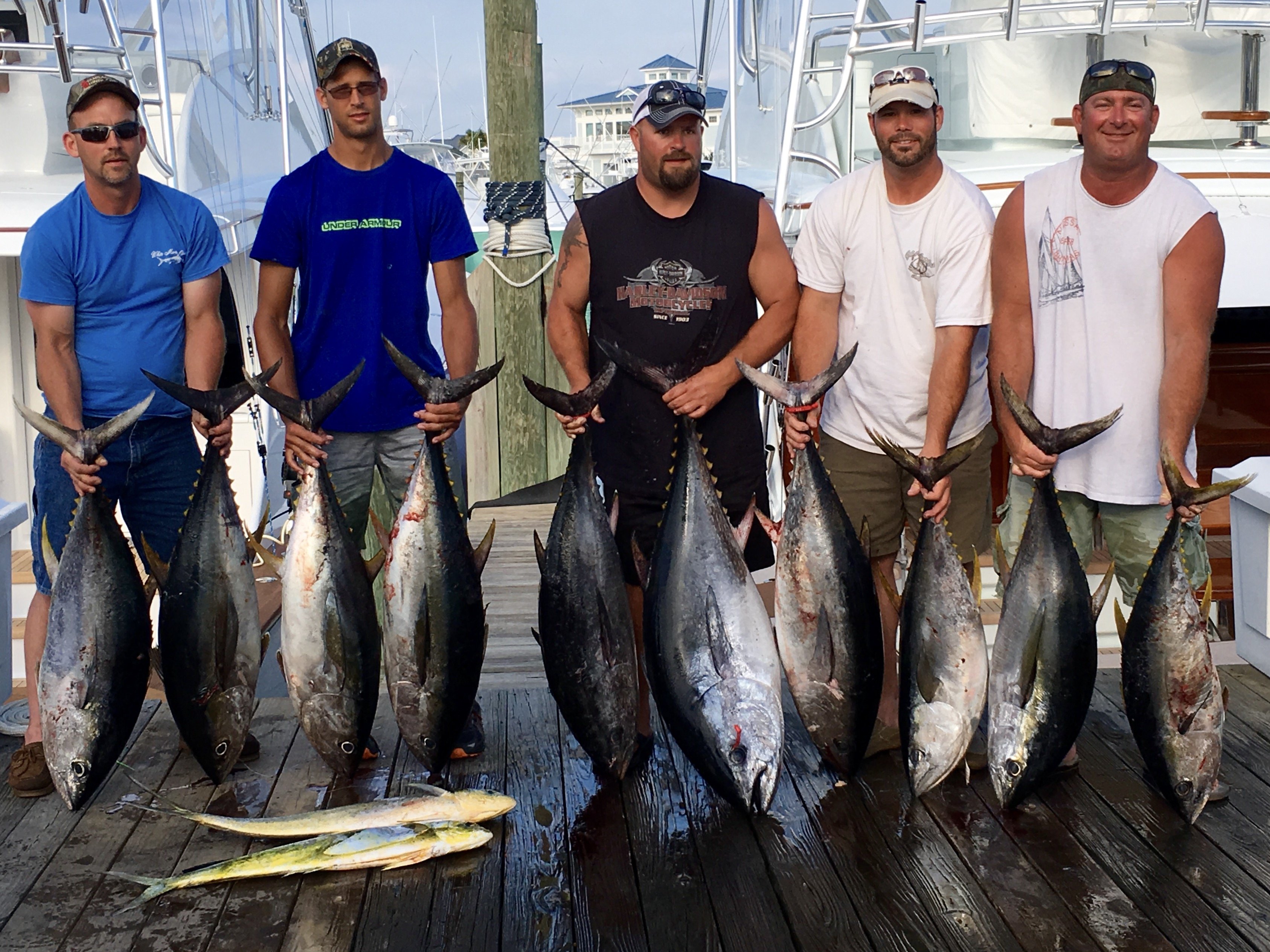 David Grove and his crew had a fantastic day on the charter boat MARLI with Captain Mark Hoos and mate Mark Stephens fishing out of Sunset Marina. They had three bluefin tuna, seven yellowfin tuna and two dolphins.