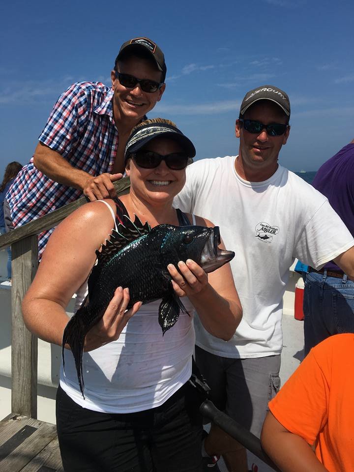 Captain Chris Mizurak on the party boat Angler reported some good sea bass fishing on ocean structure today with nice fish up to four pounds.