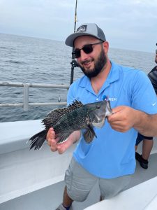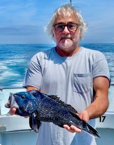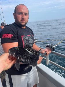 Had three anglers in double digits with sea bass. Capt Chris was high hook. Hurricane himself, who may have shaken his recent malaise, was second highest. Pretty sure everyone else had dinner and a bit more.