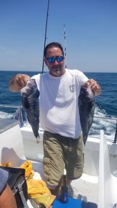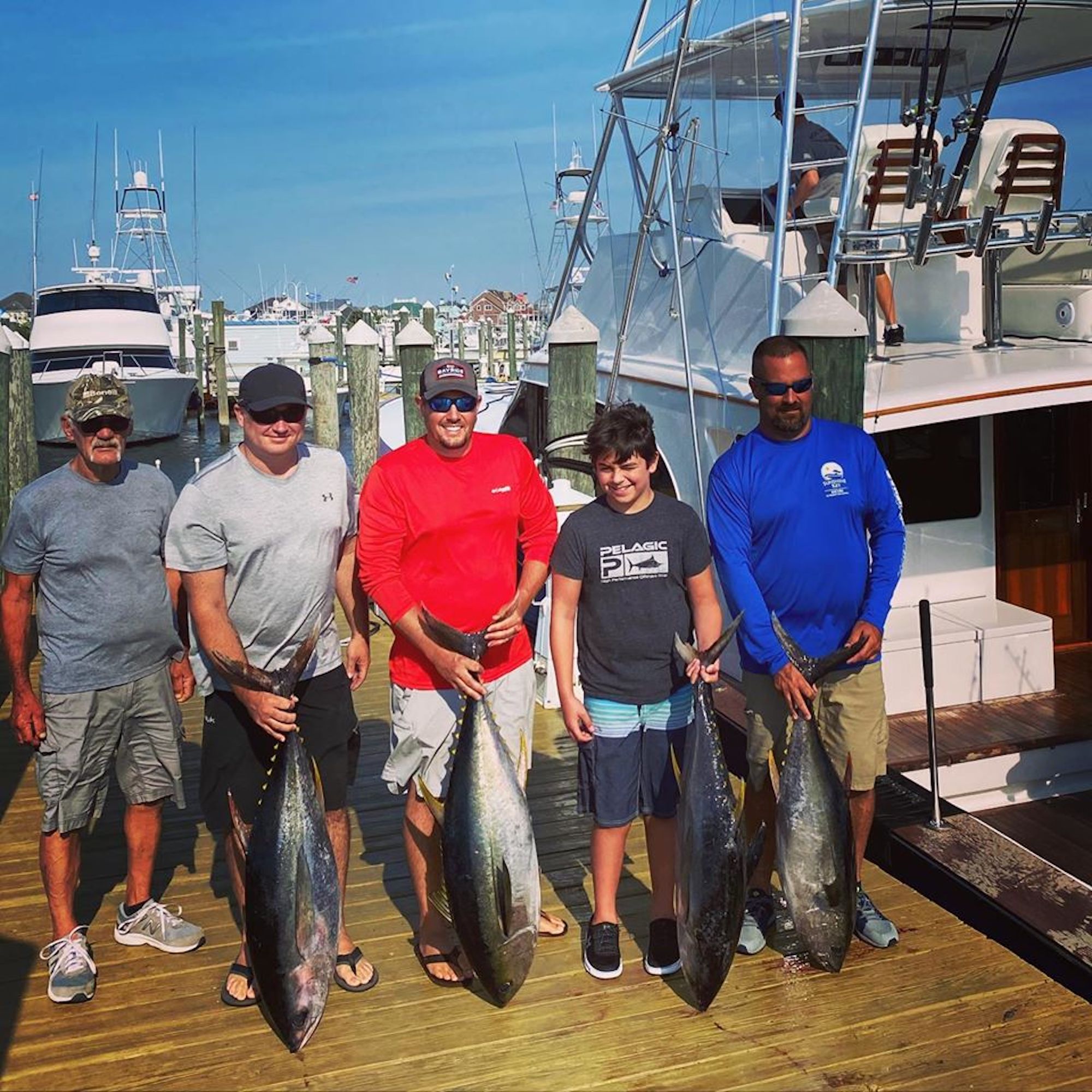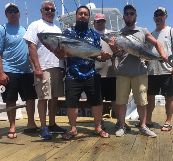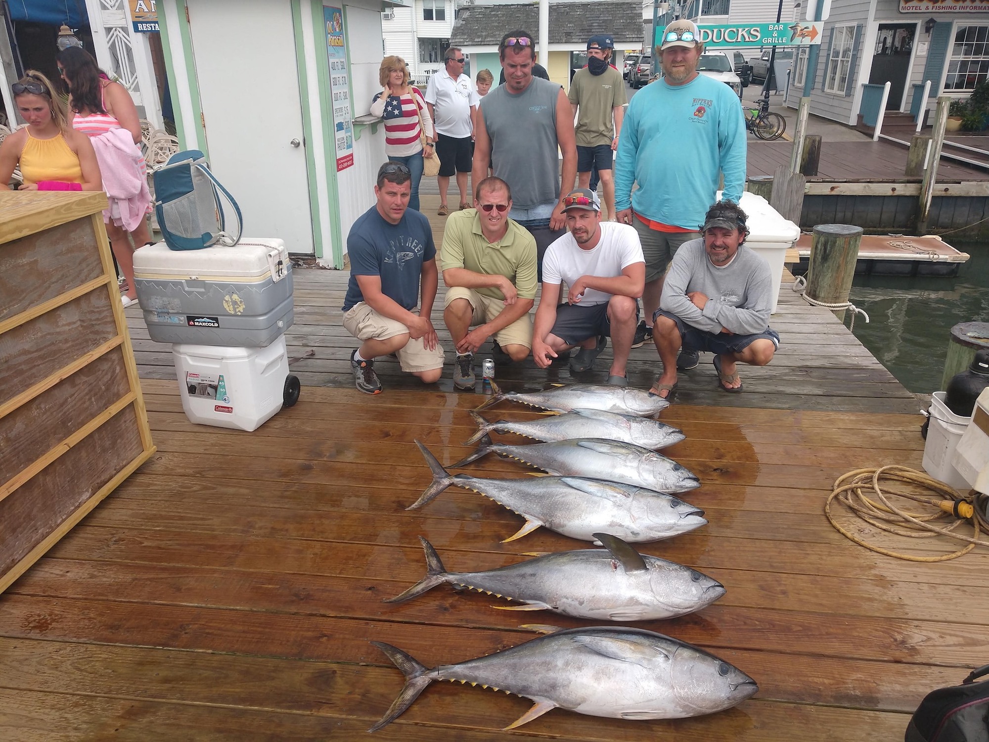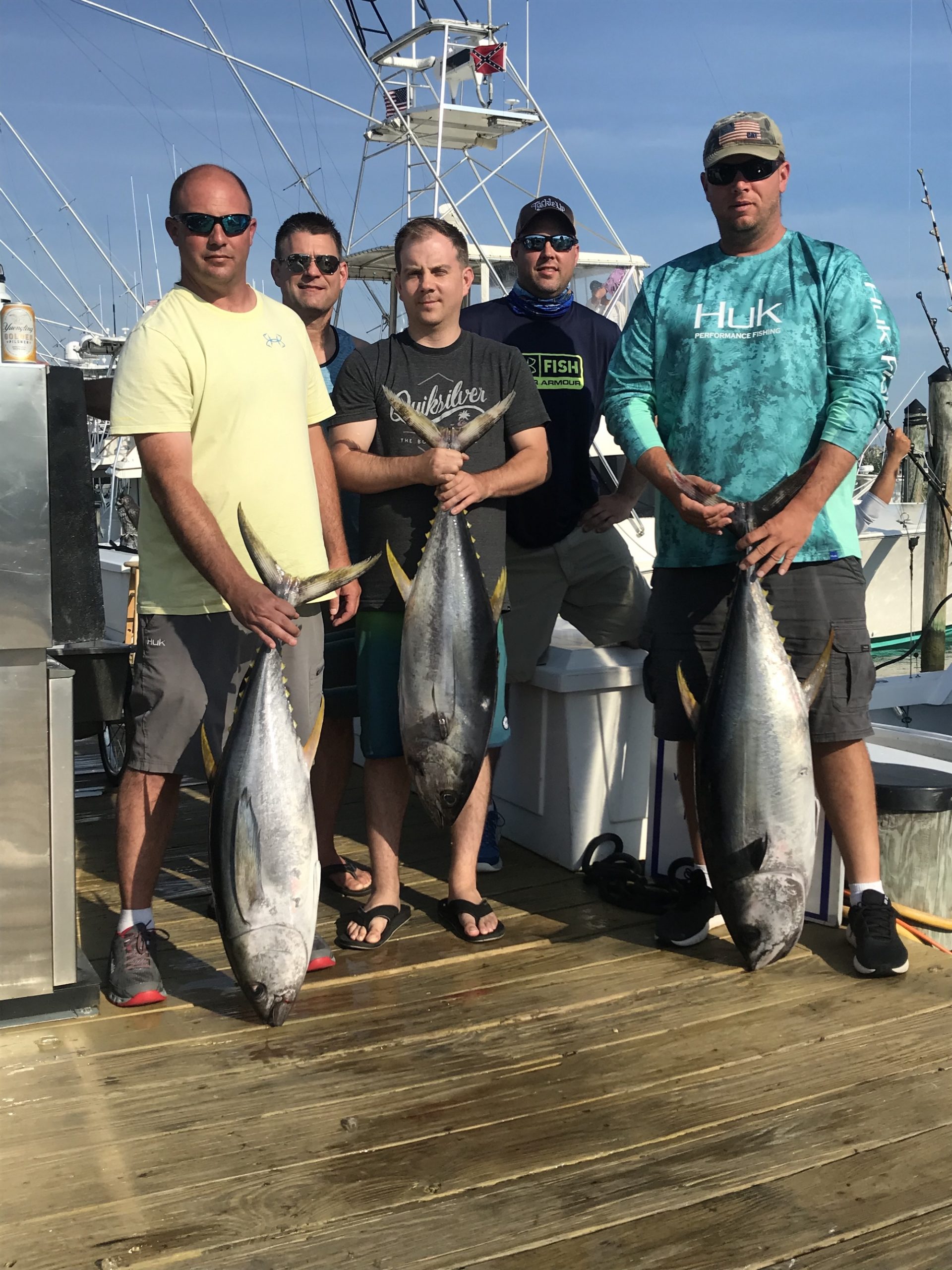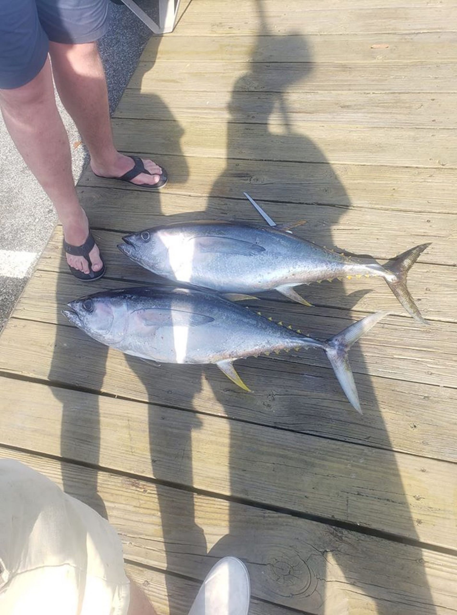 Offshore fishing for tunas was hit or miss today with most boats reporting just a couple of fish. It gets crowded out there on the weekend and that definitely impacts the fishing success so today you had to capitalize on your bites. Captain Dan Stauffer of the Fin Chaser out of the Talbot Street Pier had a nice day of it with his anglers putting them on six nice yellowfin.