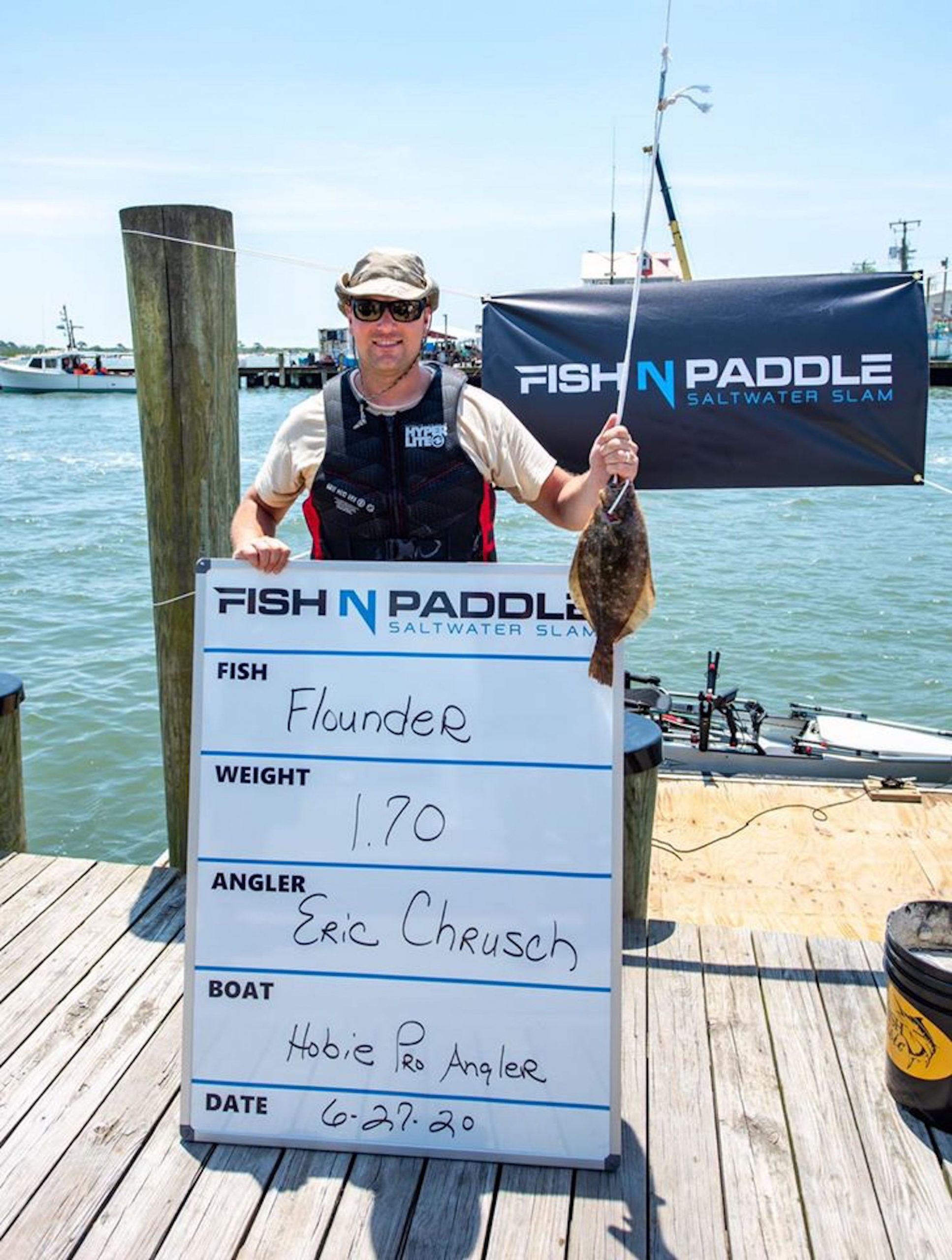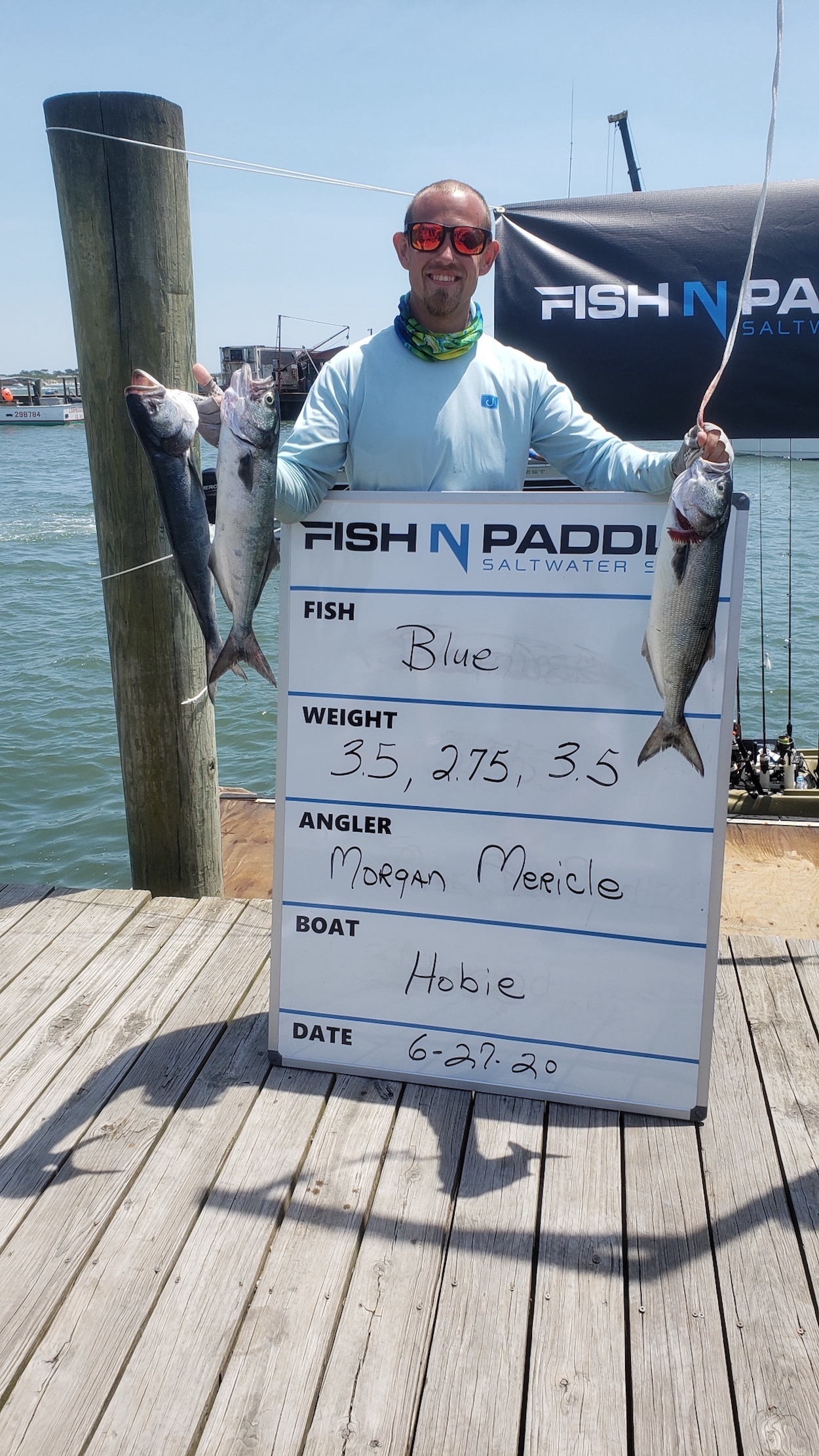 Today was the first day of scales action for the kayak only tournament The Fish N Paddle Saltwater Slam put on by Brian Roberts and it was a good first day of fishing. 47 kayak anglers are vying for over $7,000 in cash and prizes including new Lightning Kayaks. Here’s who’s in the lead currently.