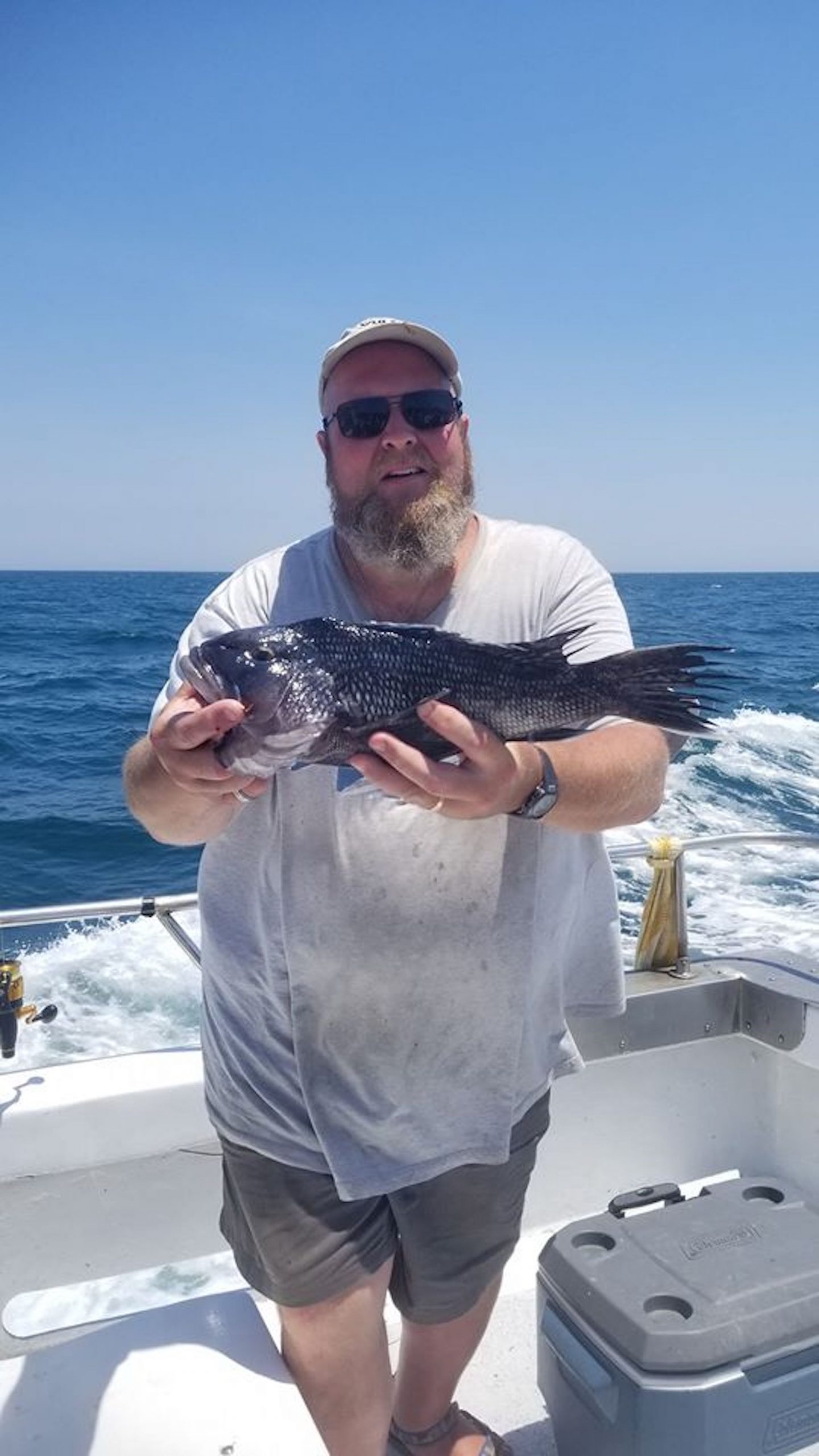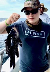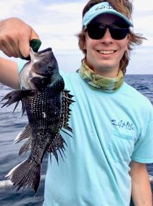 First stop offered high hopes for this fishery’s future – innumerable double-headers of throwback cbass (with an occasional dandy) graced the rail. After about 45 minutes the bite went quiet – shut down. Still marking nearly 40 feet of fish? Yes, but no takers. Then, curiously, we nicked a few pool contenders. I suppose the jumbos had no concern what the giant school of junior fish were about.