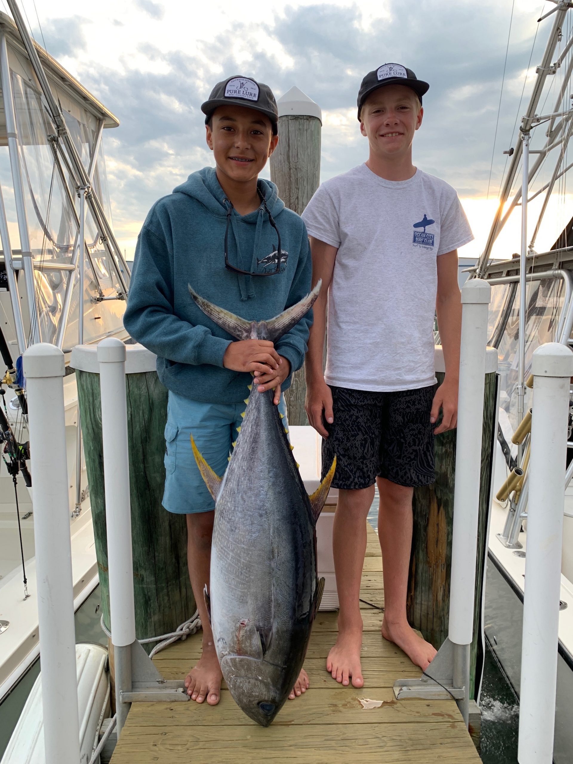 Lucas caught his first ever yellowfin tuna while Ashton Clarke worked the pit on the private boat Wigg One.