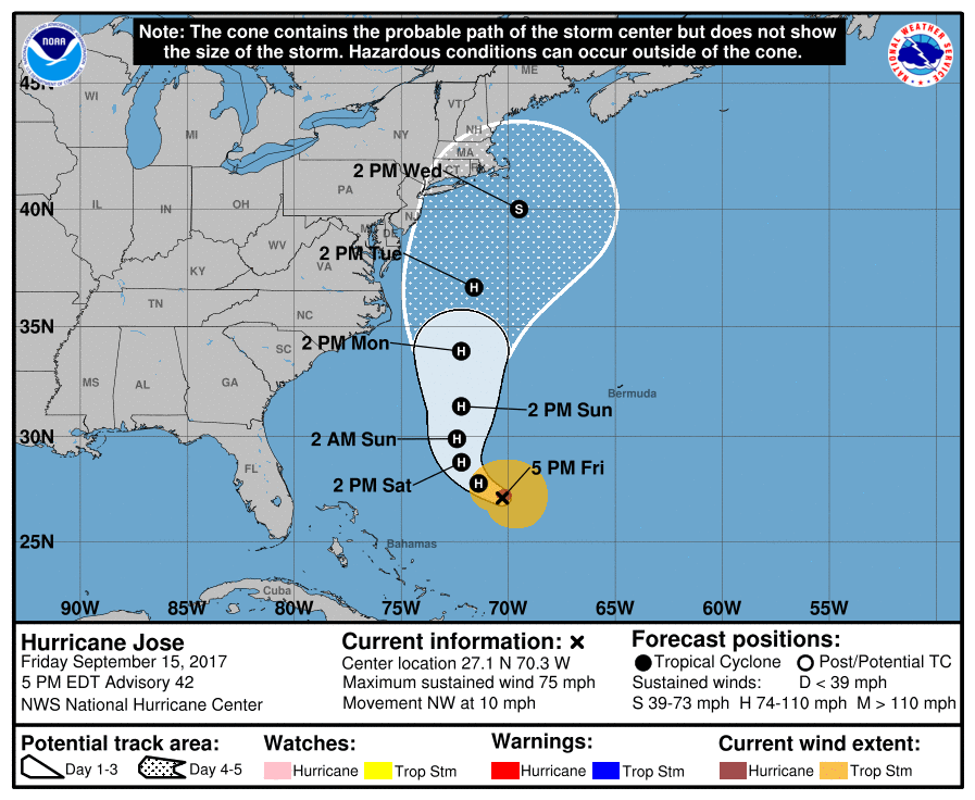 We had another beautiful day to fish in Ocean City and offshore in the canyons today. There was more of a swell from the south offshore as hurricane Jose’ moves closer to our area, but overall it was very nice. Jose’s direct path is obviously uncertain, but his projected cone now has Jose’ off of our coast sometime Monday into Tuesday.