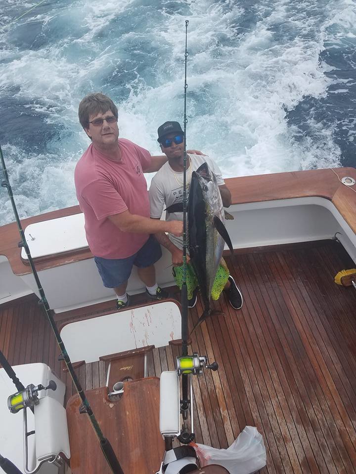 Captain Luke Blume and mate Jon Henry of the C Boys found a nice yellowfin tuna and 10 mahi while trolling the Poor Man’s Canyon today.