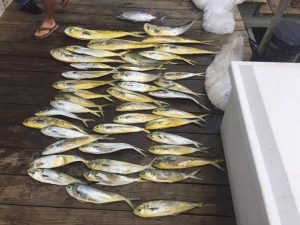 There are a bunch of mahi off in the canyons right now and Captain Jeremy Blunt of the Wrecker found a big old pile of them today.