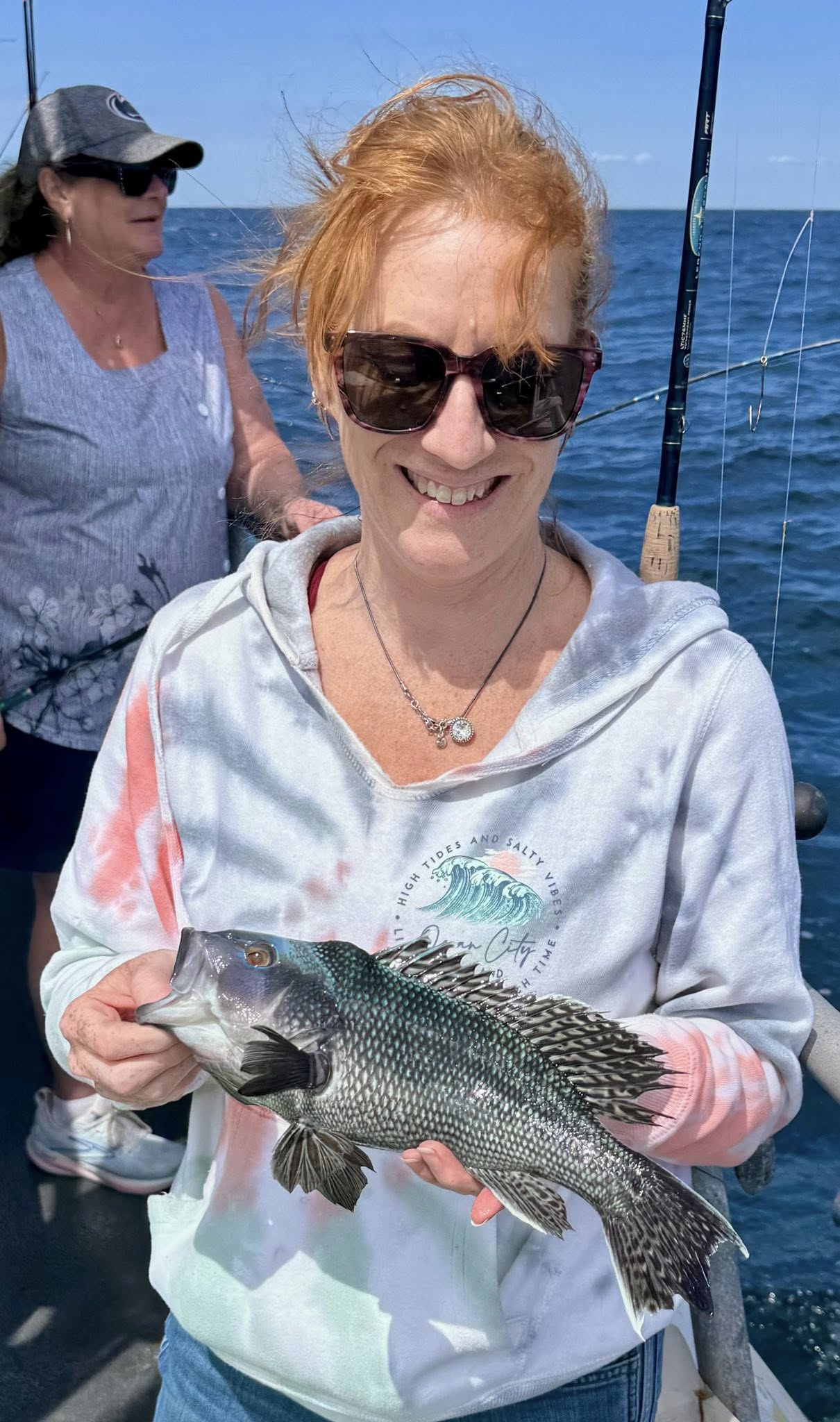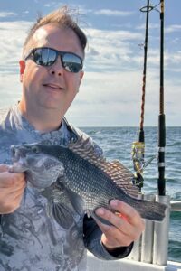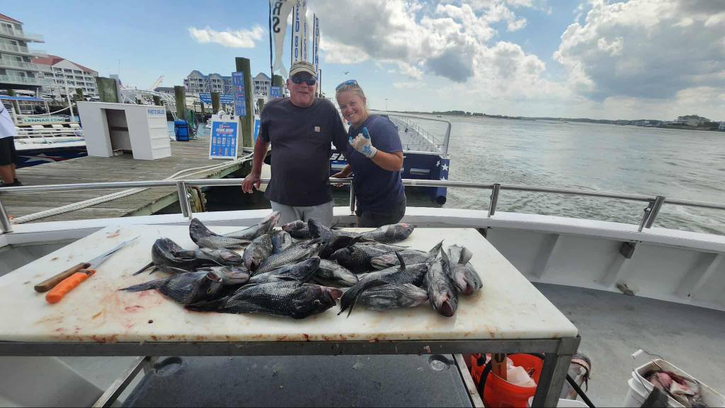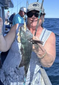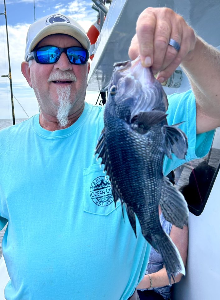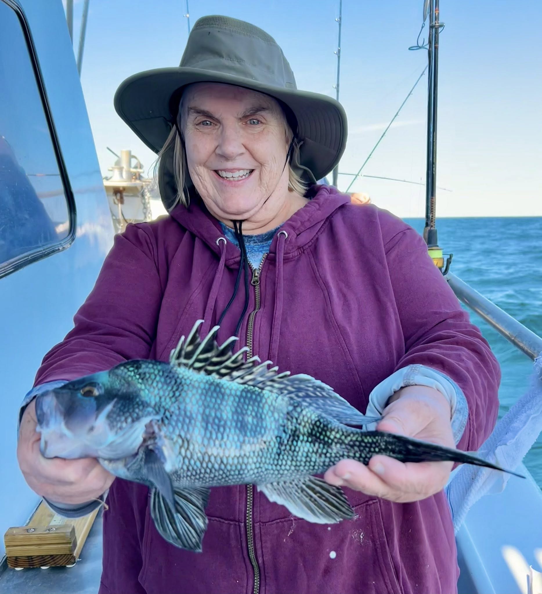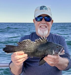 Captain Monty Hawkins of the Morning Star had to contend with a sporty ride out today, but by the end of the day it was nice and there were sea bass in coolers.