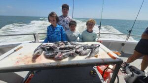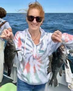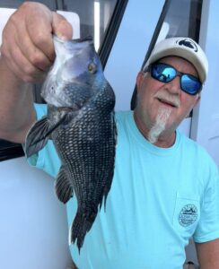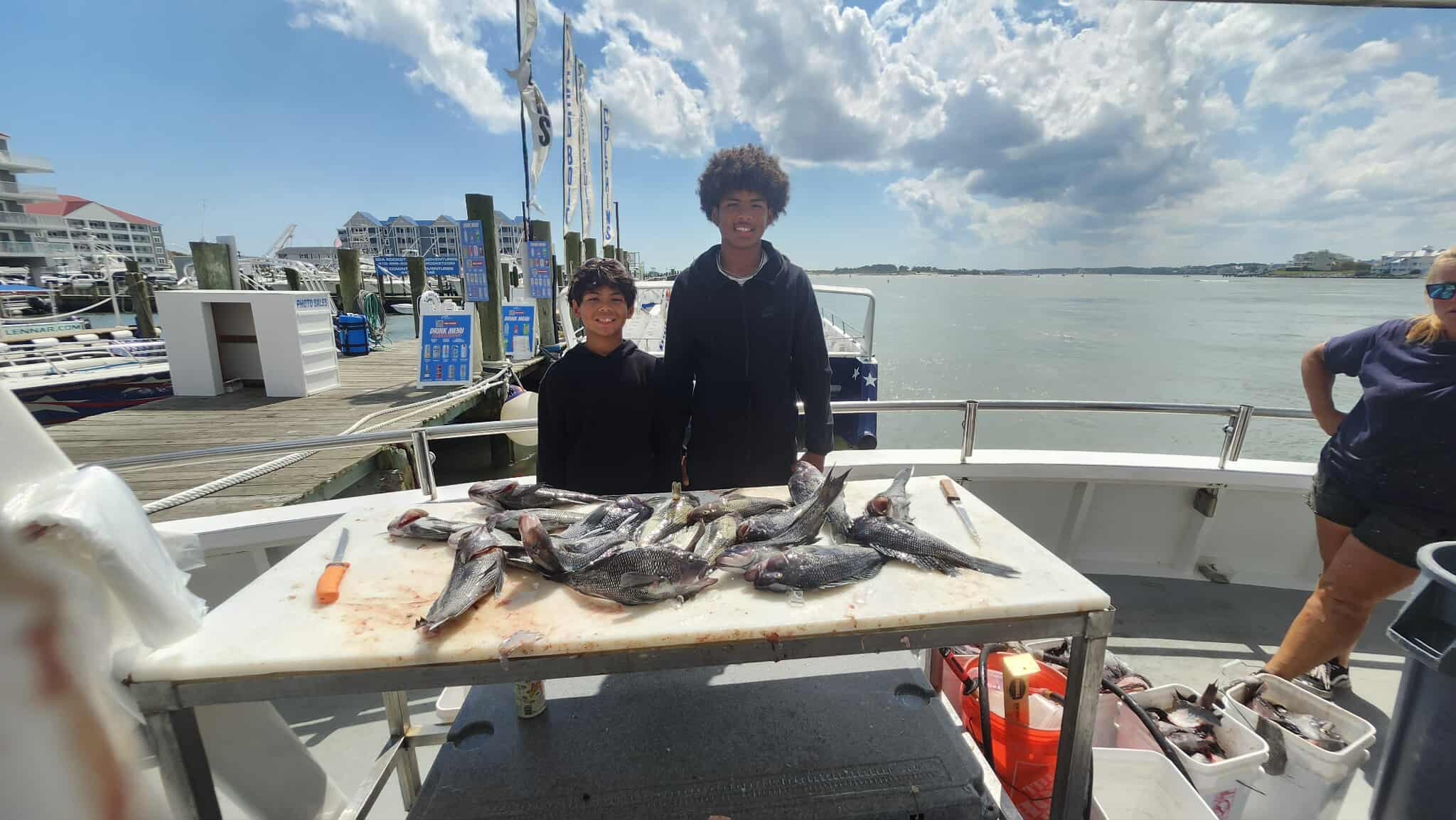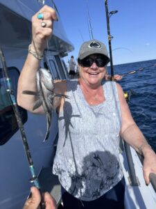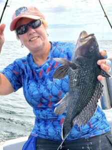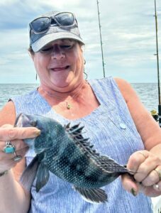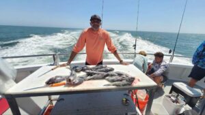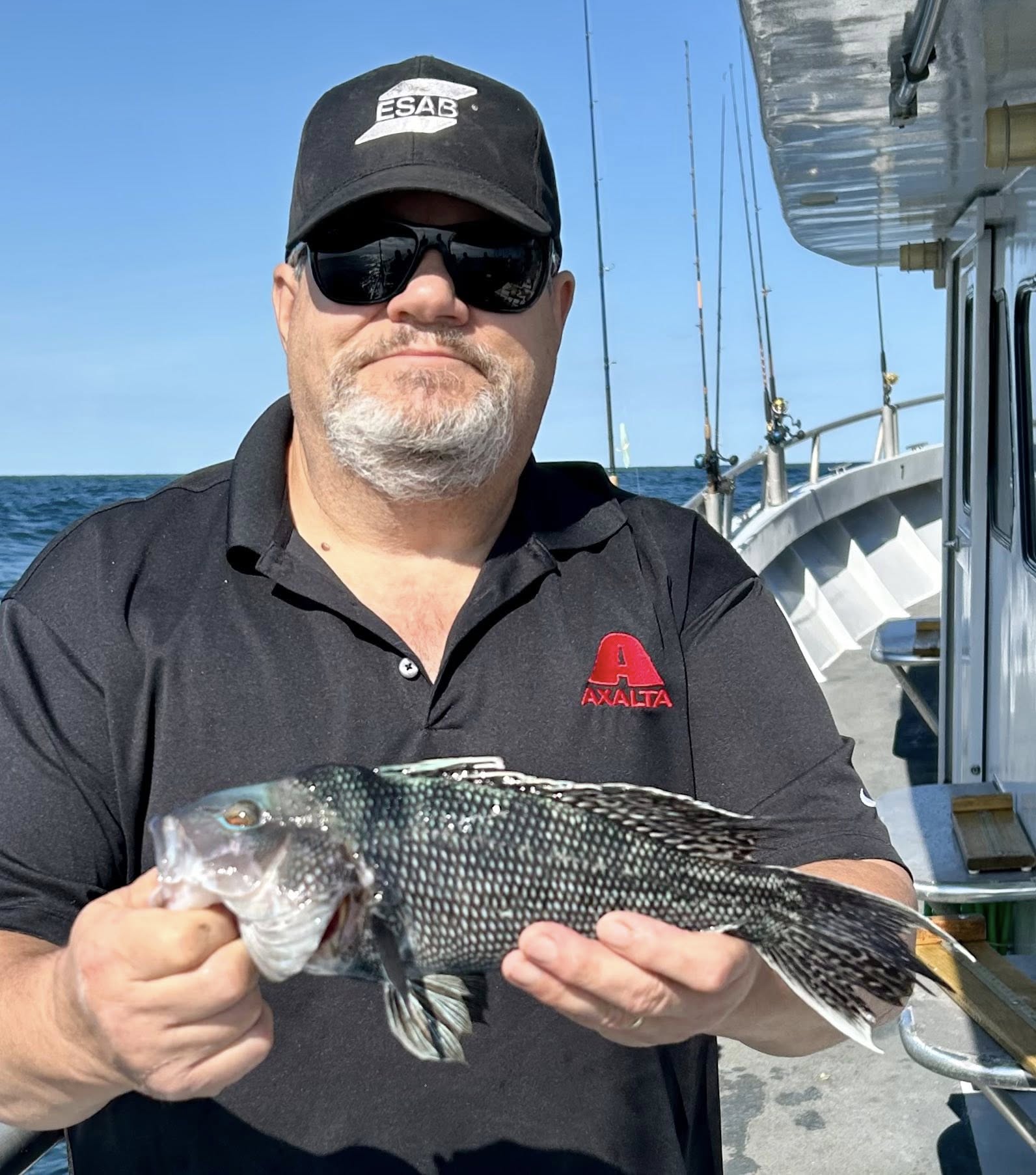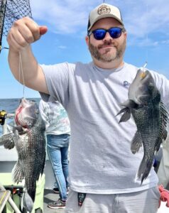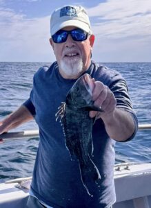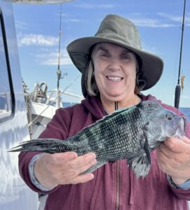 Captain Monty Hawkins of the Morning Star had to contend with a sporty ride out today, but by the end of the day it was nice and there were sea bass in coolers.