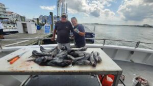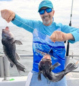Tried the mahi at a few spots before dropping to bottom for sea bass. Was not the epic bite of yesterday’s start, but we did box some.