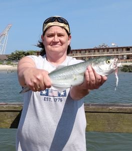 Bob Haltmeier of the Oceanic Pier sent in some more photos of folks having good luck fishing the pier the past few days. Anglers are still having good luck with bluefish, shad and small rockfish on spec rigs, Gotcha plugs, bucktails and Roy Rigs.