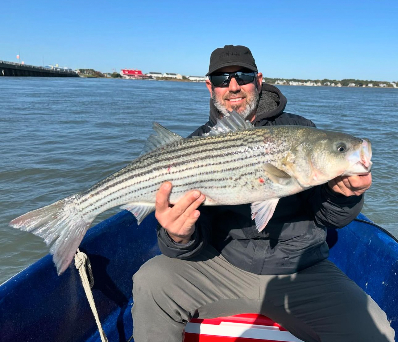 There are some nice rockfish being caught in the OC Inlet and at the route 50 bridge. This morning OC Sharkhunter found this nice fish at the 50 bridge.