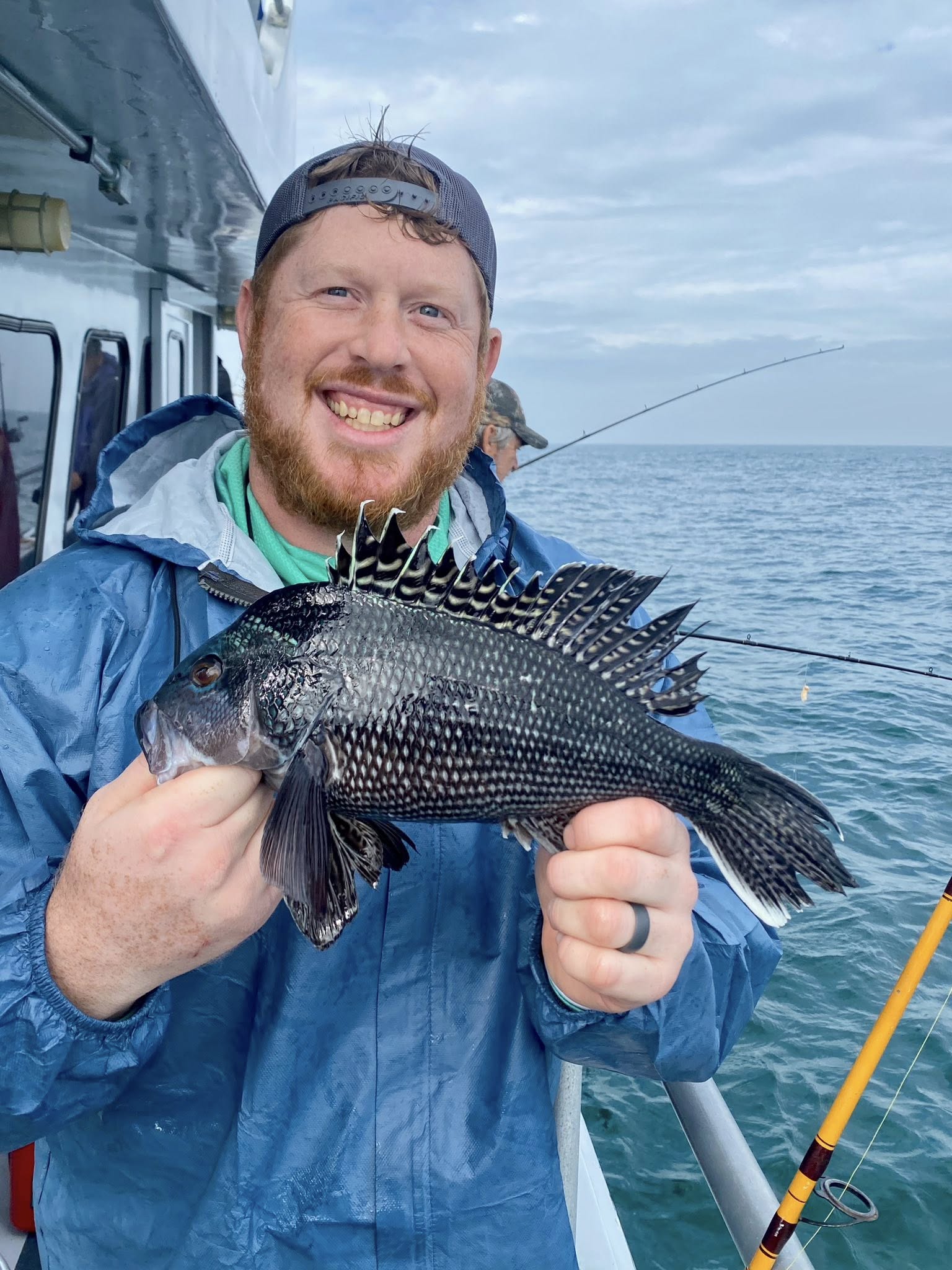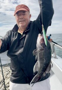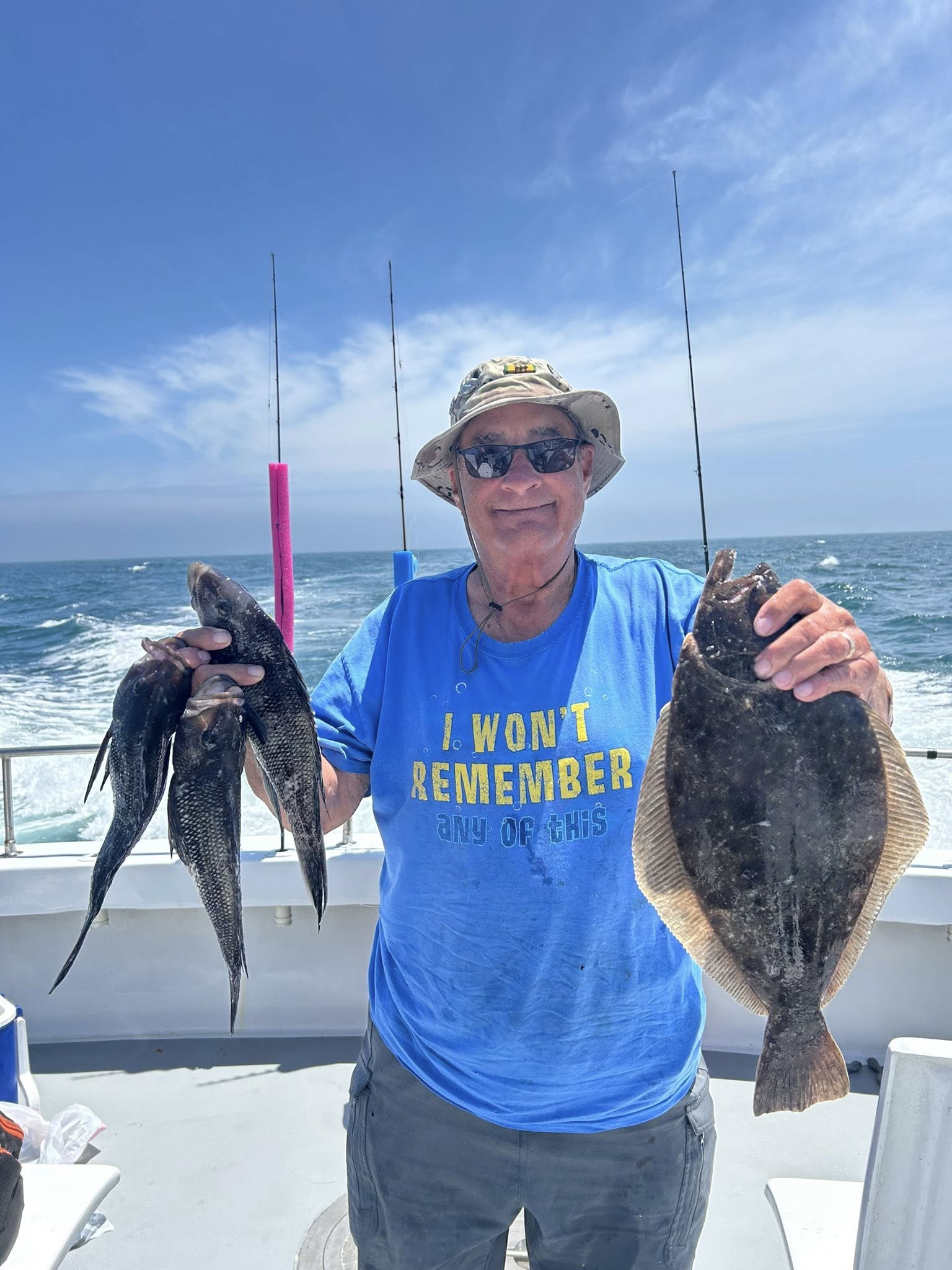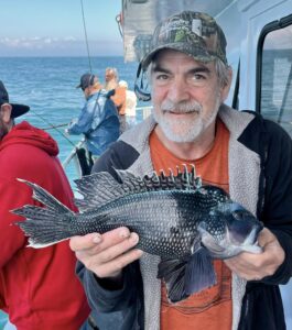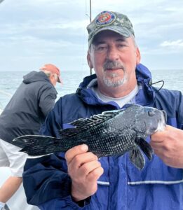 Capitan Chris Mizurak of the Angler reported a steady bite today with plenty of sea bass and some flounder going home with happy anglers.