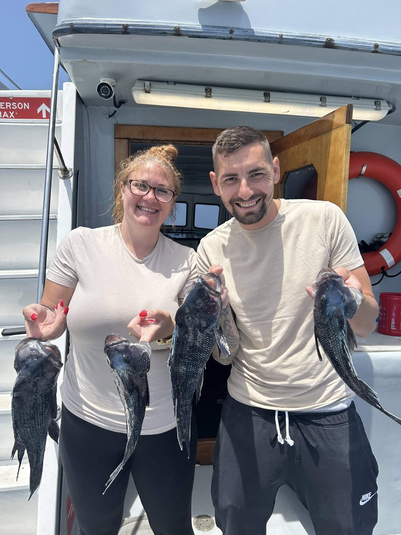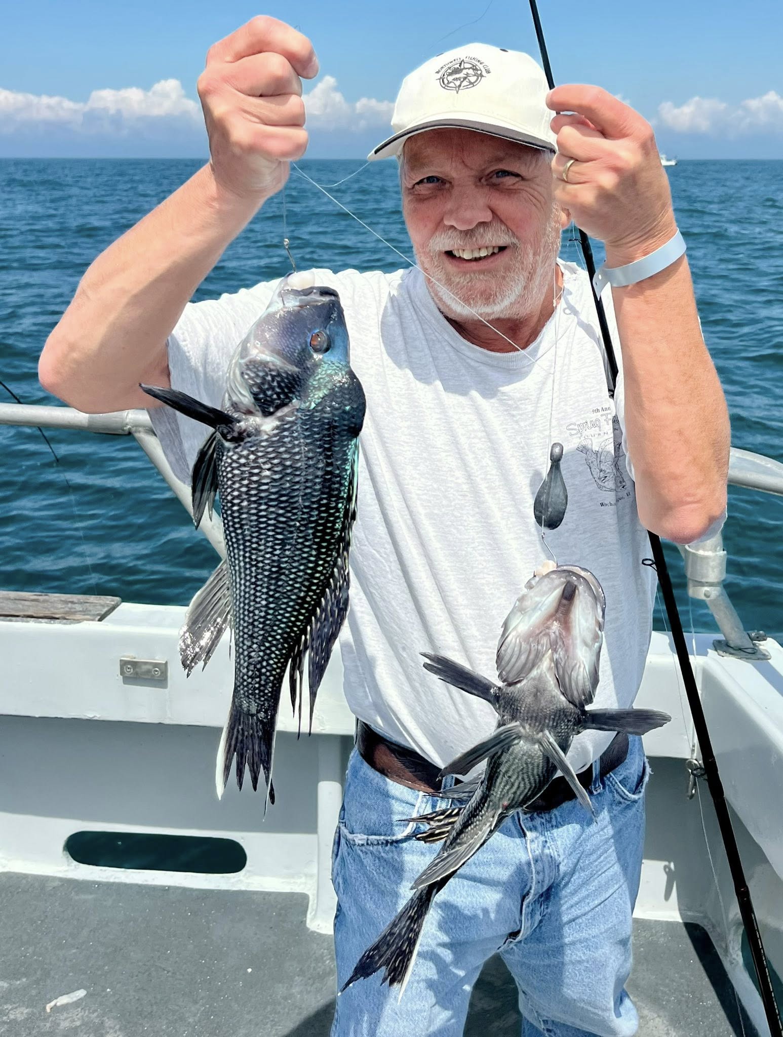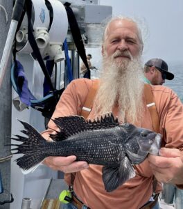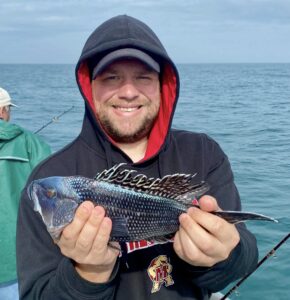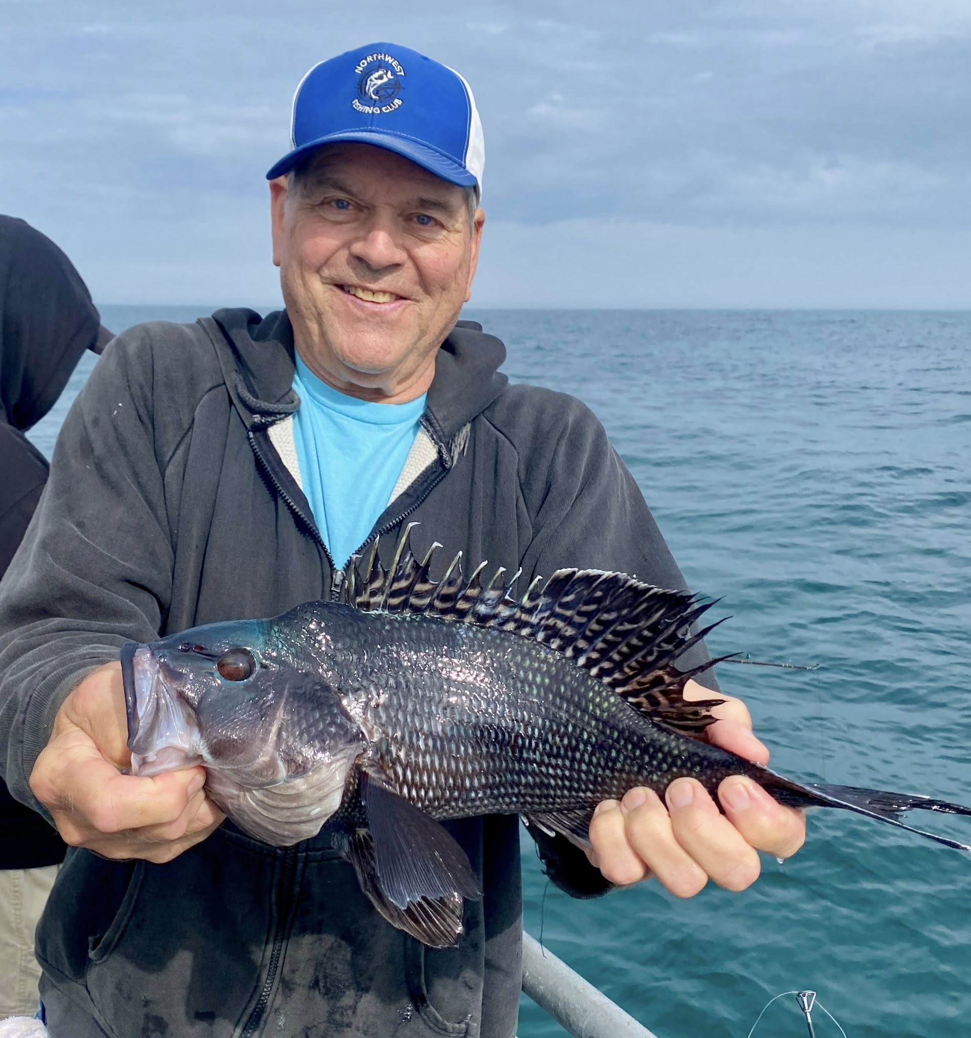 Capitan Chris Mizurak of the Angler reported a steady bite today with plenty of sea bass and some flounder going home with happy anglers.