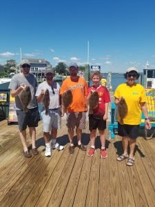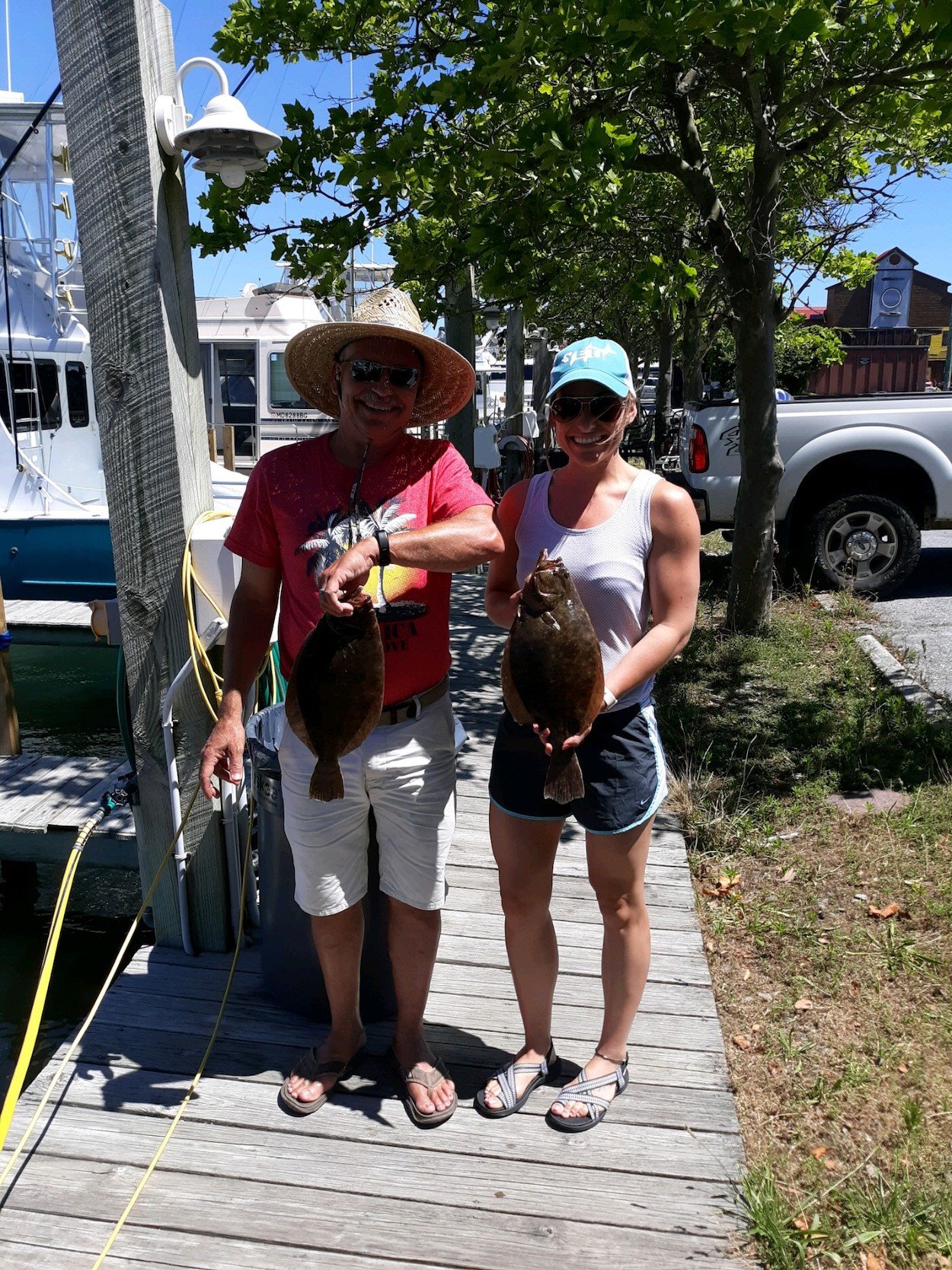 Flounder fishing in our back bays has been very good over the past several weeks when the water clarity is good. This morning on the incoming and first part of the outgoing tide water clarity was very good so flounder paid the ultimate price. Captain Drew Zerbe put Matt Ritter, Phil., PA, Paul & Rob Bowden, Bel Air & Catonsville, MD, Colin Palmer, Herndon, VA and Joan Brazill, Johnstown, PA on some good flounder fishing with squid and shiners in the bay. Netmen were Austin Korycki and Stephen Anderson.