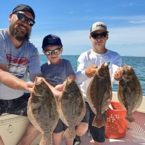 Captain Jason Mumford of Lucky Break Charters had a good day on the bay with this father and son duo when he put them on four keeper flounder. The kid outfished them all.